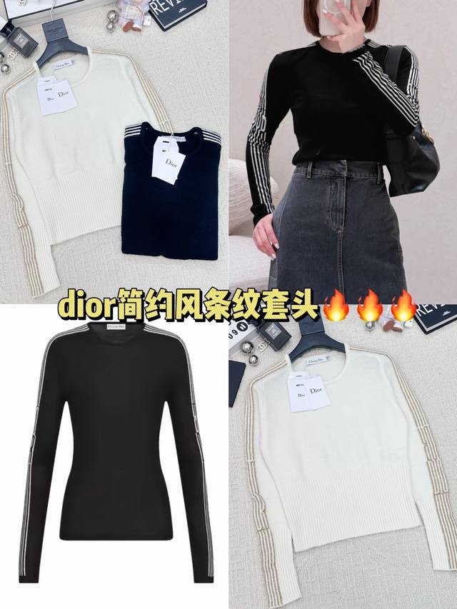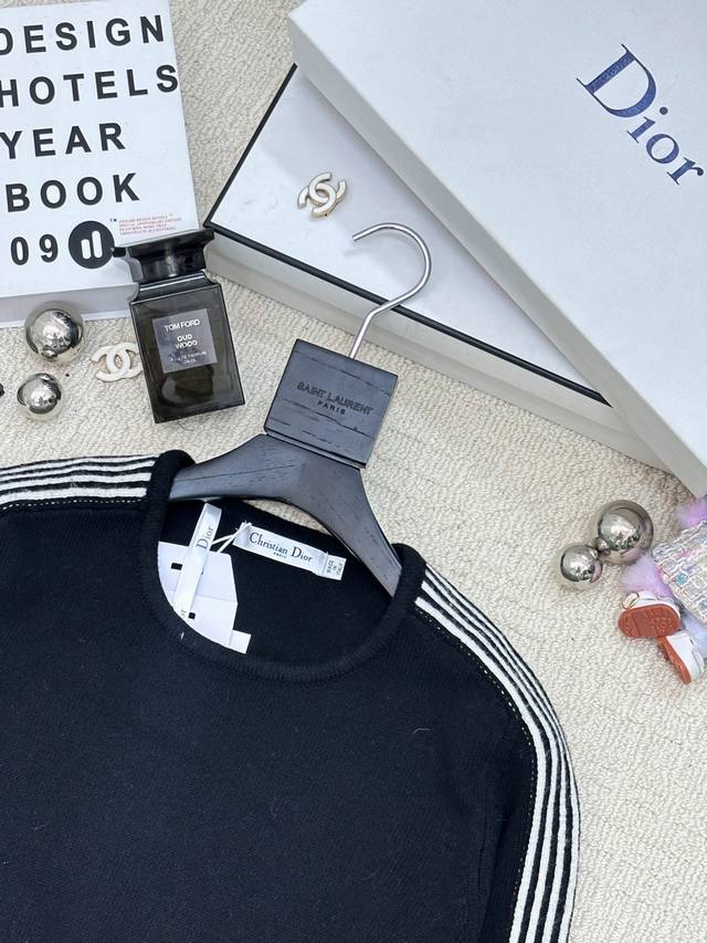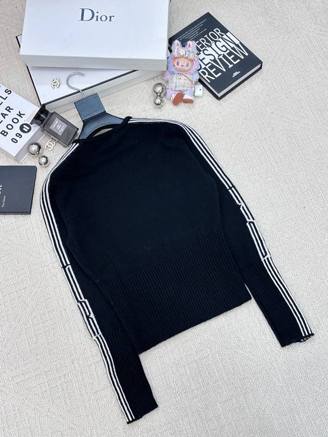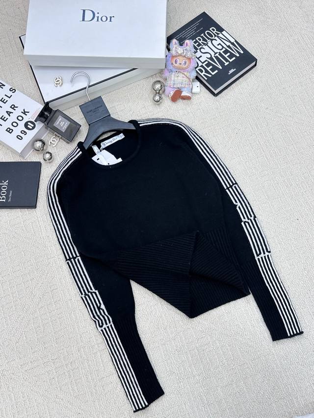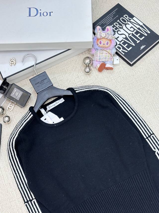 Autumn/Winter New Simple Striped Crew Neck Pullover with Logo Pattern Decoration Series Available Now, High-End Look, 2 Colors Available (