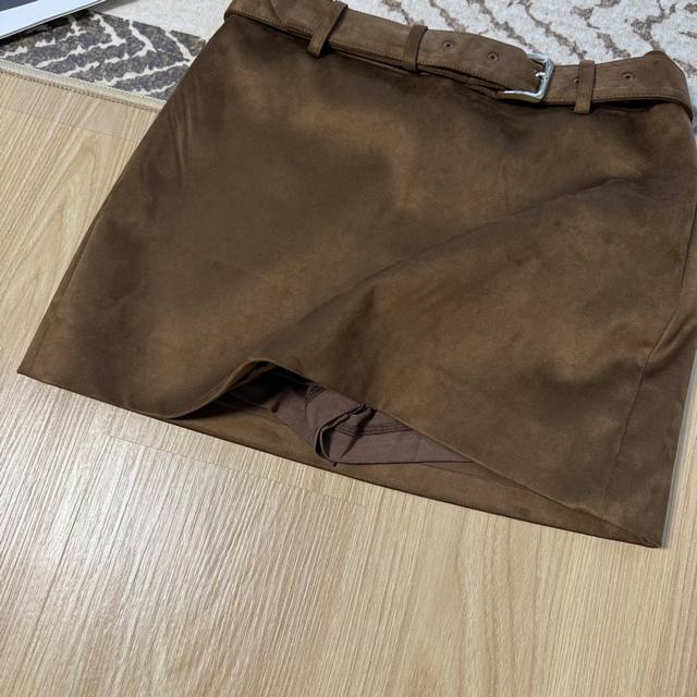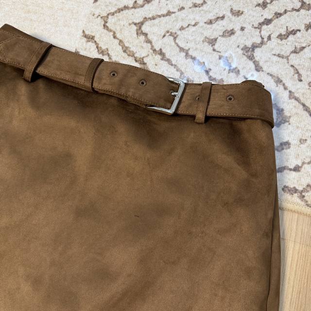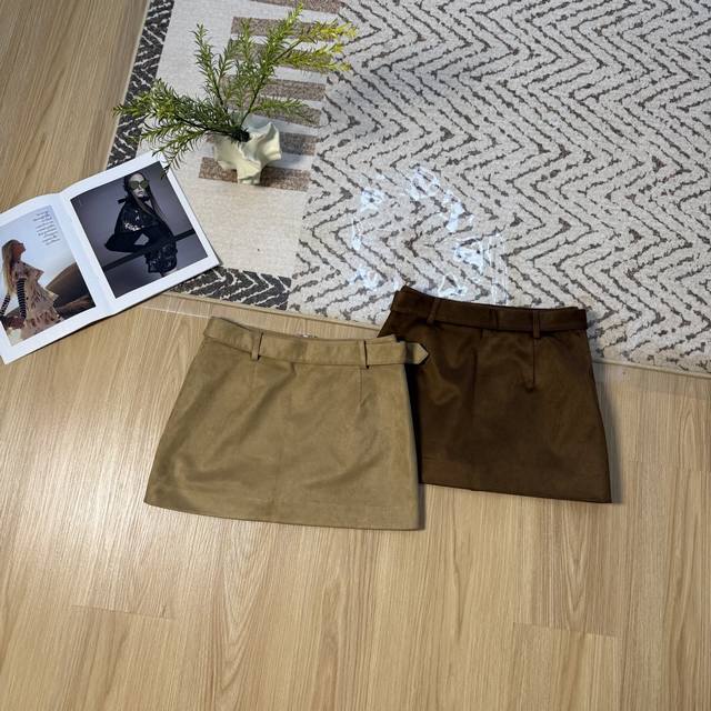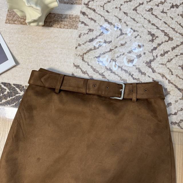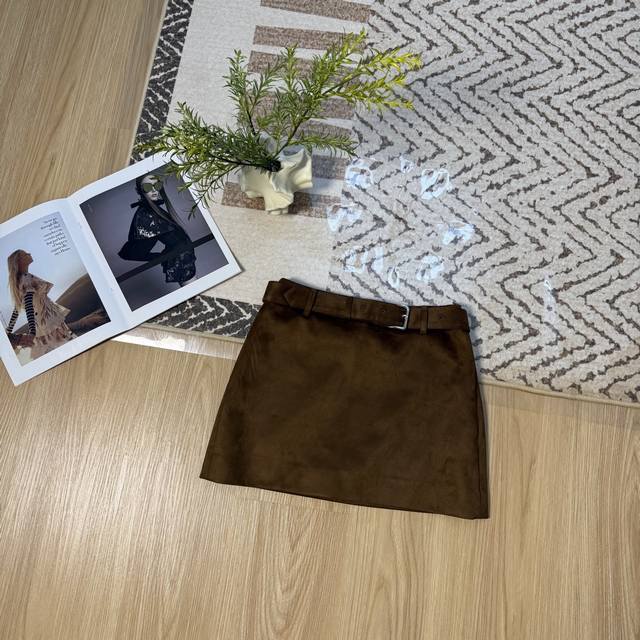 Autumn/Winter Retro Midi Skirt 25 Autumn/Winter Belt Design Suede Midi Skirt, a stylish and elegant piece. The fabric looks soft and has a gentle matte sheen, perfect for autumn and winter. The low-saturation color is versatile and suits everyone. The simple A-line silhouette naturally elongates the legs. It comes with a matching belt with a metal square buckle, which not only cinches the waist and enhances proportions but also adds a touch of detail. Suitable for everyday commuting or a slightly retro look. Two colors, three sizes.