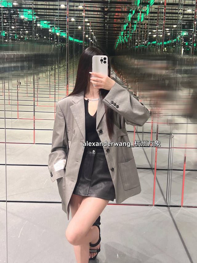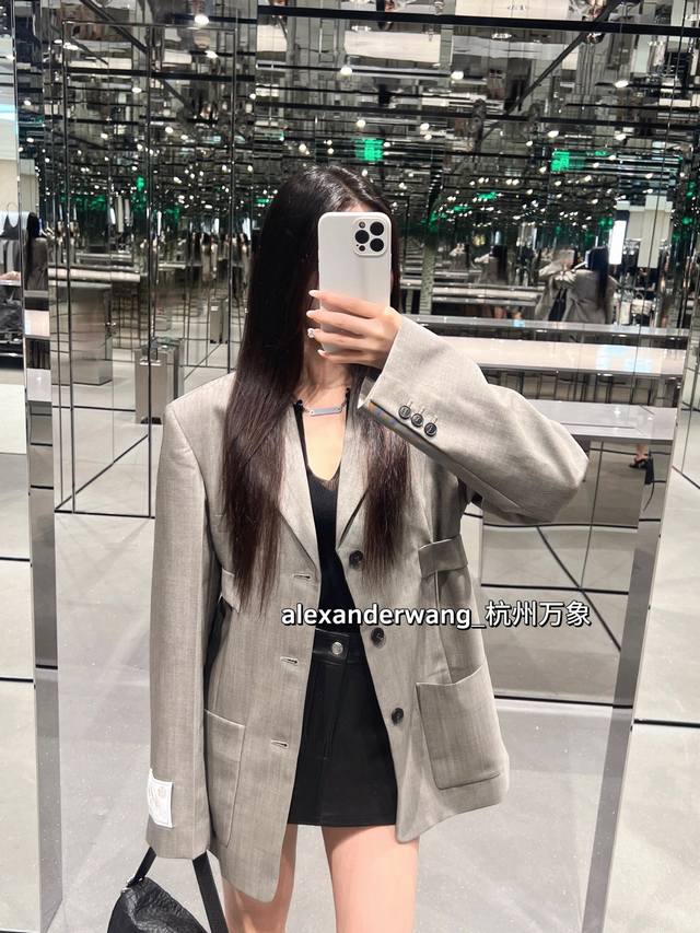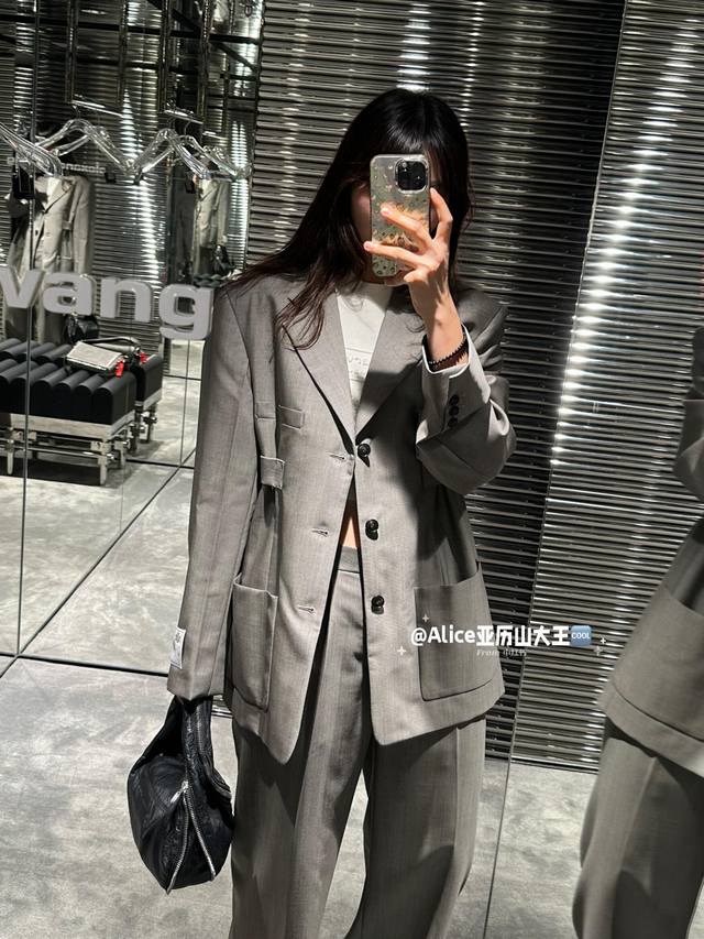 Aw Autumn and winter retro buckle loose suit collar jacket is shipped, the king is back with a hit, the fabric belt is adjustable, a Korean Korean style suit, the fabric color is also the version, the upper body looks super good, the wall is highly recommended, the crotch is explosive gray black Sm