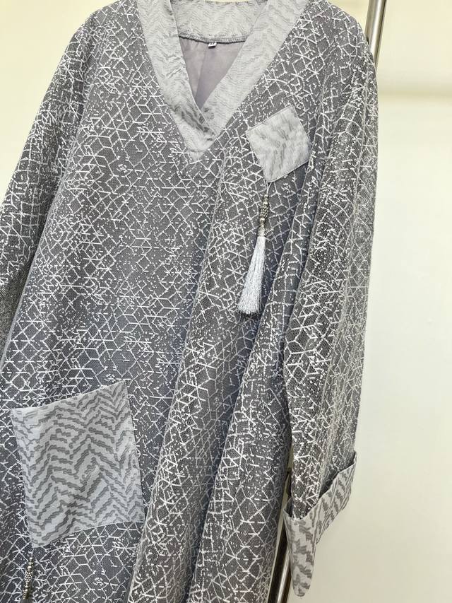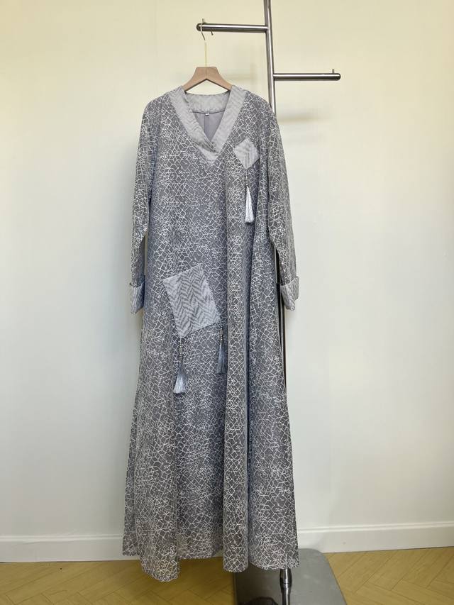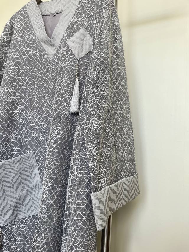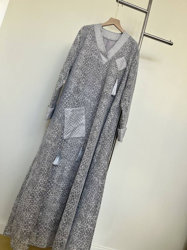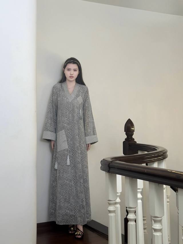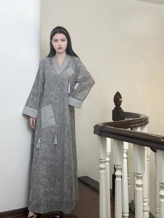 This dress features a simple gray base with exquisite textures, showcasing understated luxury. The modified cross-collar design retains traditional charm while adding a modern and neat touch. The wide sleeves are decorated with tassels, which are smart and elegant. Whether you are out and about or on special occasions, it will make you stand out from the crowd and show your unique taste.