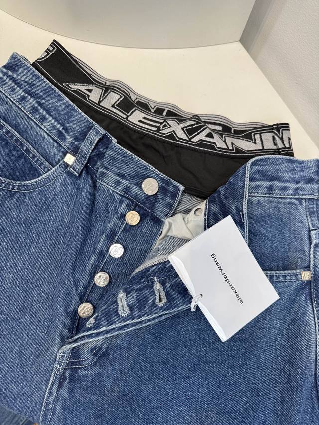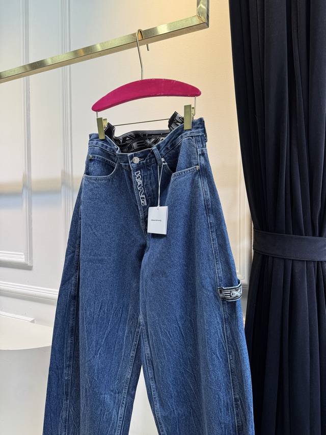 a.Wang24 new fake two-piece patchwork scimitar-style jeans
