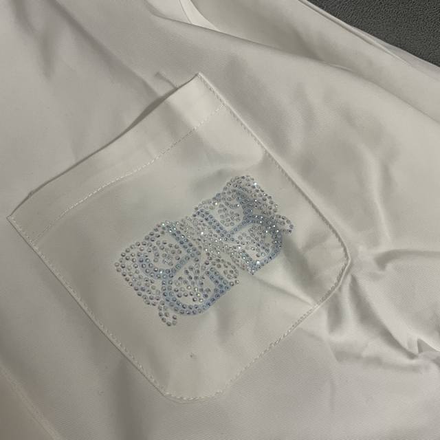 B 25Ss early spring new style letter pocket high temperature hot diamond back large logo loose slim all-match shirt 1 color size Sml