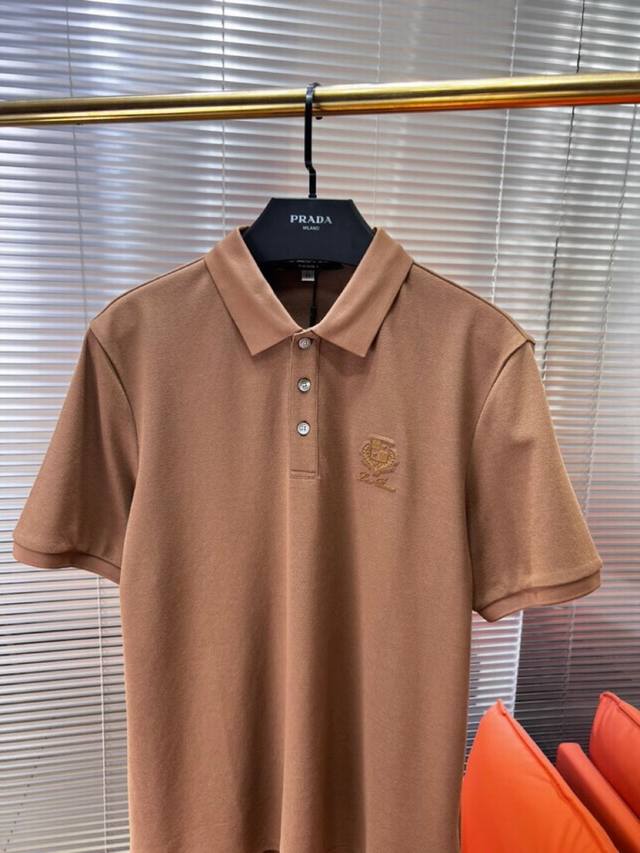 New 2025 Burberry three-button lapel polo shirt with a small chest logo and emb