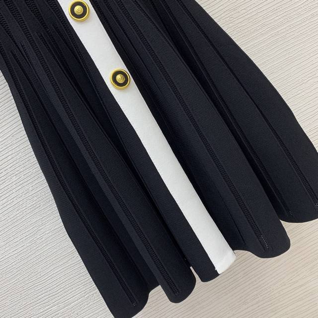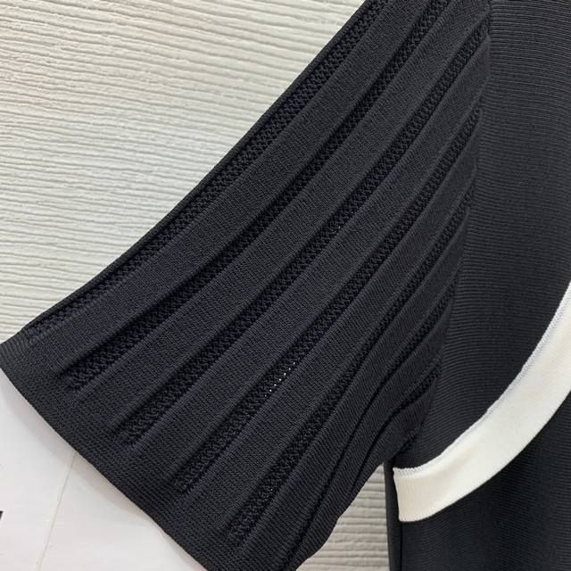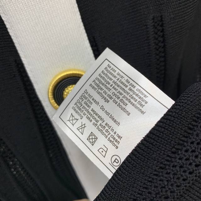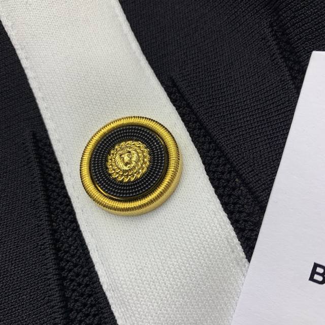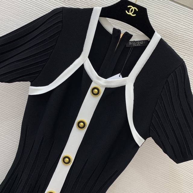 Balmai* Balmai's new custom lion head gold button contrasting color stitching ripped stripes slim fit short-sleeved knit dress! Black, size M: bust 78-88, waist 54-72, sleeve length 23, skirt length 86