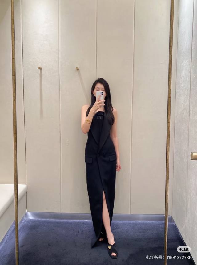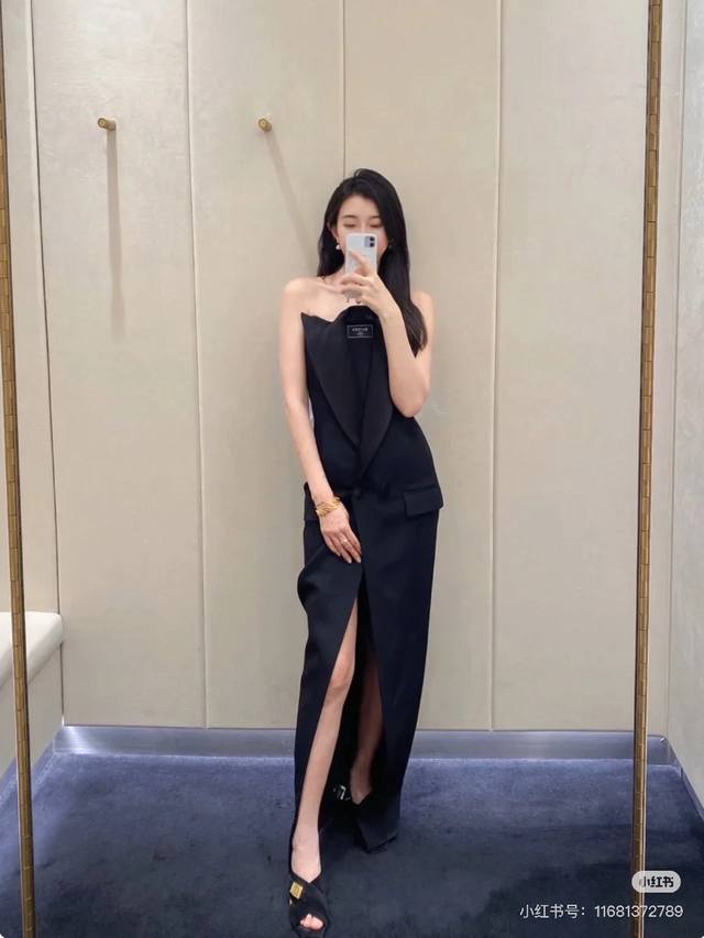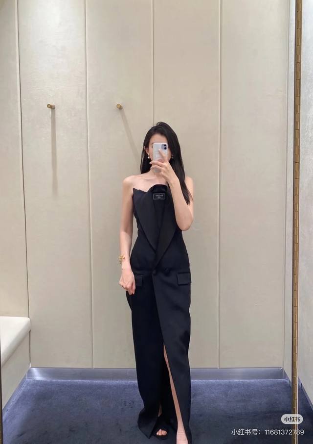 Balmai* New Balmai Dress, same style as Lin Yun and Zhang Yunhan, featuring a unique design with a three-dimensional lapel, suit collar, high slit, and slimming silhouette! Black, Size M: Bust 84-88cm, Total Length 136cm.