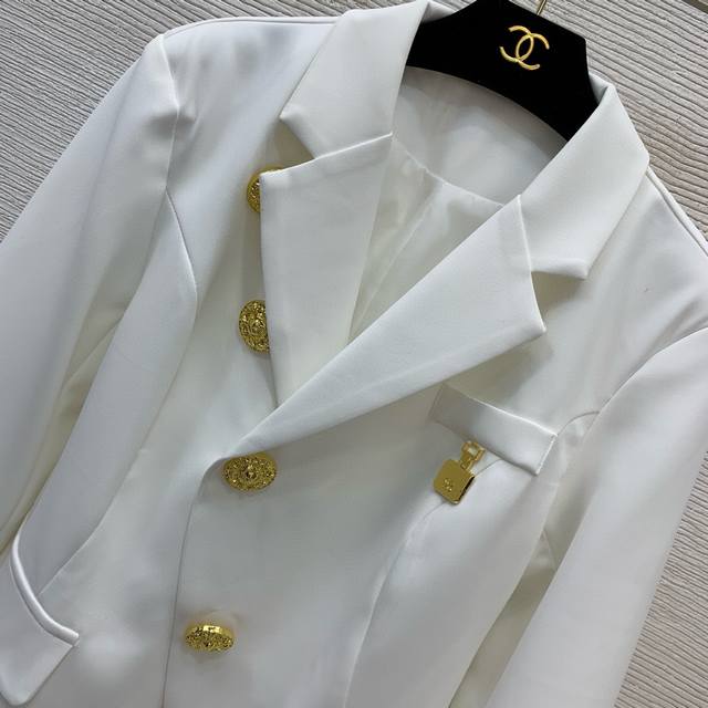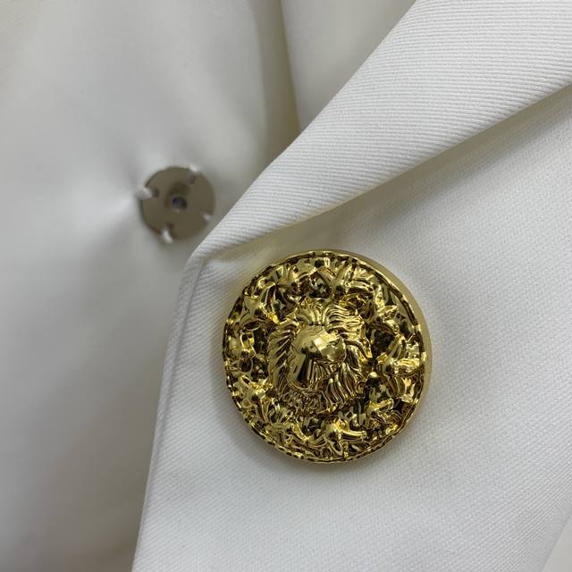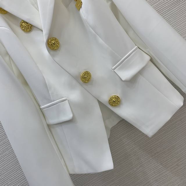 Balmai* New Elegant Slim Fit Professional Suit! Lion Head Gold Button Decoration Slim Fit Suit Jacket with Button-Down and Zipper Closure, Wide-Leg Trousers! White, Black, Size M: Shoulder Width 42cm (with shoulder pads), Chest 90cm, Sleeve Length 59cm, Jacket Length 64cm; Waist 64-72cm (elastic back), Hips 104cm, Trouser Length 106cm. (