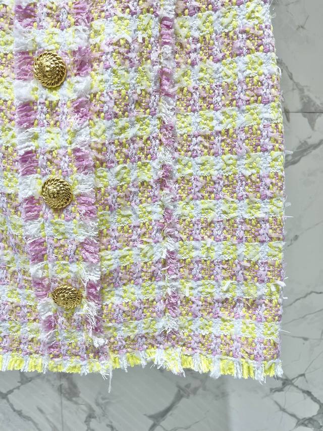 Balmain's New Rustic Dress DDD Balmain's Rustic Pink and Yellow Plaid Dress: A Romantic Encounter of Retro and Sweetness Ddd A work of art that perfectly blends retro style and sweetness! DDD The rugged fabric shimmers slightly in the sunlight , and the pink and yellow plaid pattern leaps with a cheerful melody, as if even the air is filled with a sweet atmosphere. As you twirl gently, the skirt flutters, and at that moment, you are the most beautiful sight! DDD Tired of the same old dress styles? Want a dress that can both showcase your personality and make everyone's eyes light up? Ddd This rugged pink and yellow plaid dress will definitely fulfill all your fantasies! Its unique plaid design is rugged yet delicate, sweet with a touch of retro charm, allowing you to easily handle any occasion. DDD This dress not only has a unique design, but the fabric is also carefully selected. Although the rugged fabric may seem rough, it is actually soft, comfortable, and breathable against the skin. Wearing it, you'll not only experience the charm of fashion but also enjoy a comfortable wearing experience. Come and embrace this retro-sweet style that's just for you! Let this pink and yellow plaid dress become a dazzling jewel in your wardrobe, accompanying you to shine in every important moment! Sizes: S, M, L