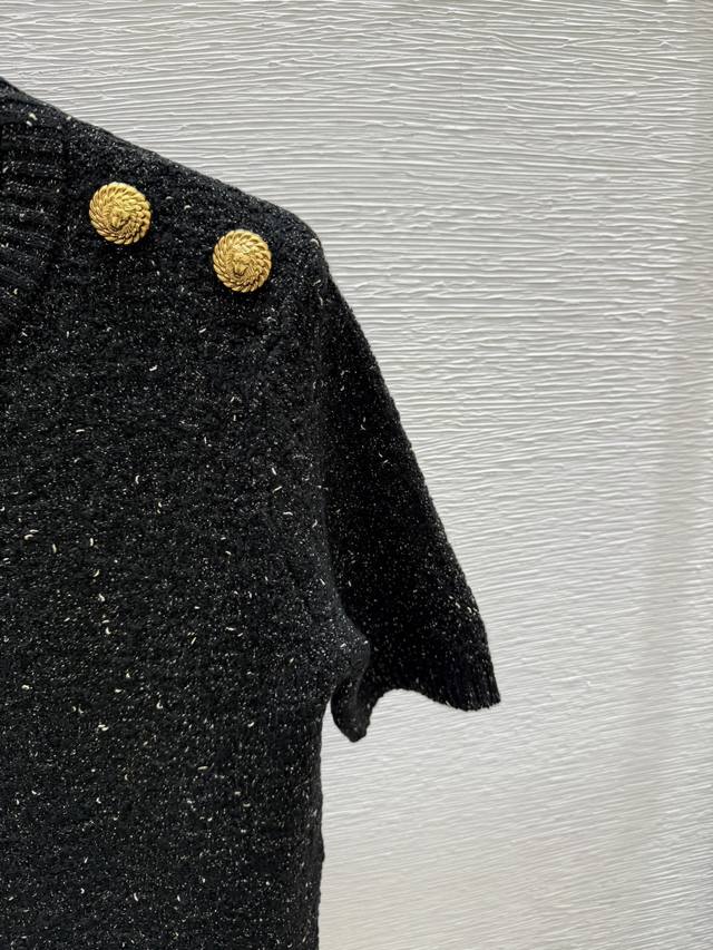 Ba's new summer gold and silver thread round neck knitted short sleeves Color: B