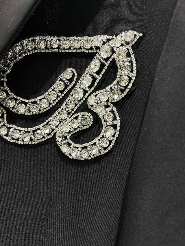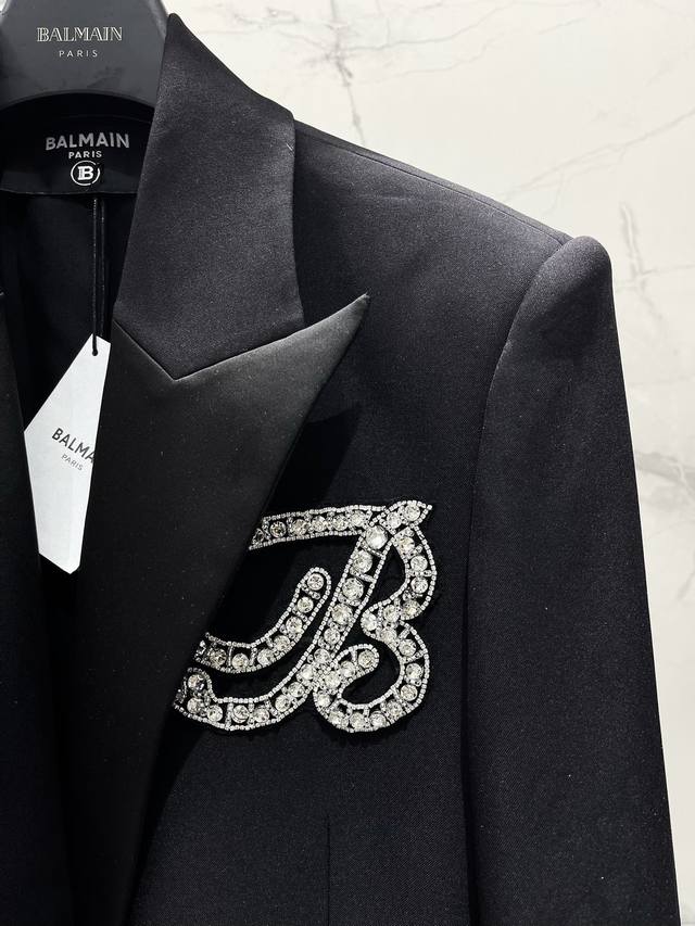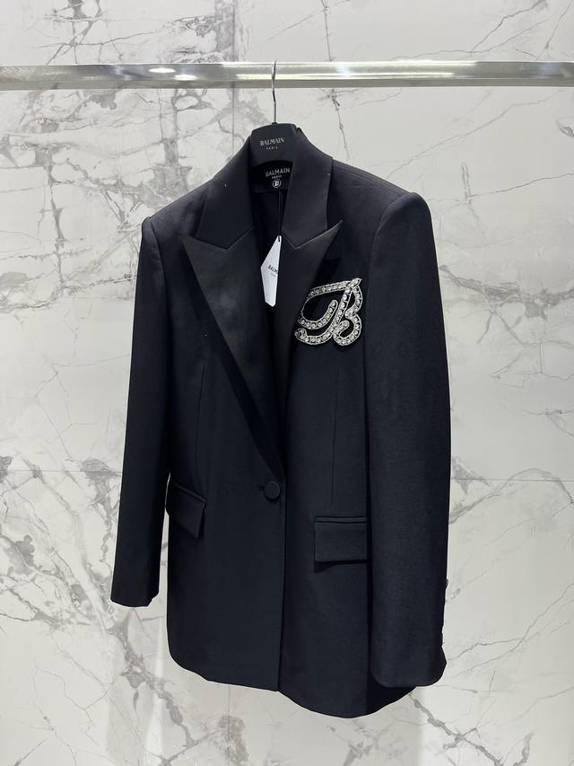 Bayer's 2026 Early Spring New Arrival: Rhinestone-Embroidered Letter "B" Casual Blazer. The silver rhinestone-embroidered letter "B" sparkles on the black blazer, understated yet luxurious