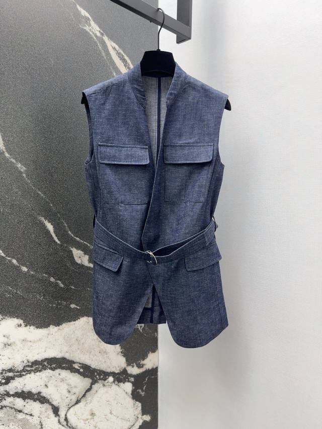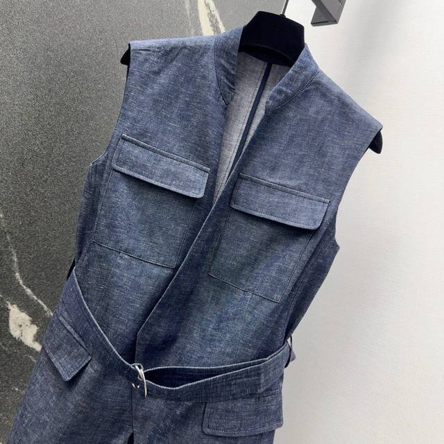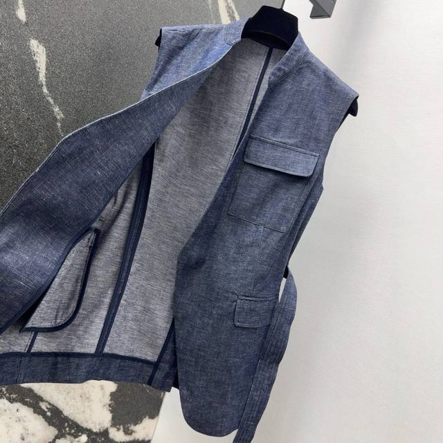 Bc 25Ss New spring and summer old money style outfit minimalist linen cotton denim vest suit lace-up buttonless V-neck vest + elastic waist shorts The style is not picky at all and looks good on everyone. The denim effect linen and cotton blend texture is absolutely perfect. It is versatile and the navy blue is super fashionable. It is easy to control for daily commuting and easily interprets the lazy and casual high-end items. Sml S size: bust 90, length 66, waist 66, hip 102, pants length 40