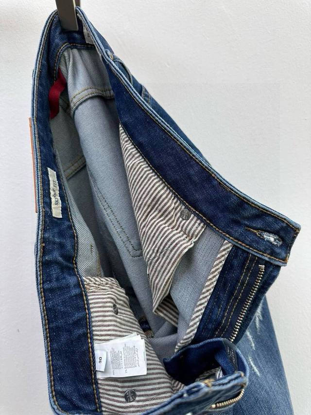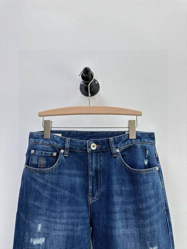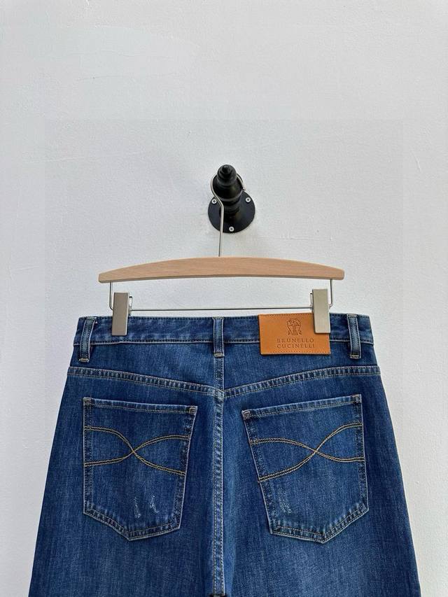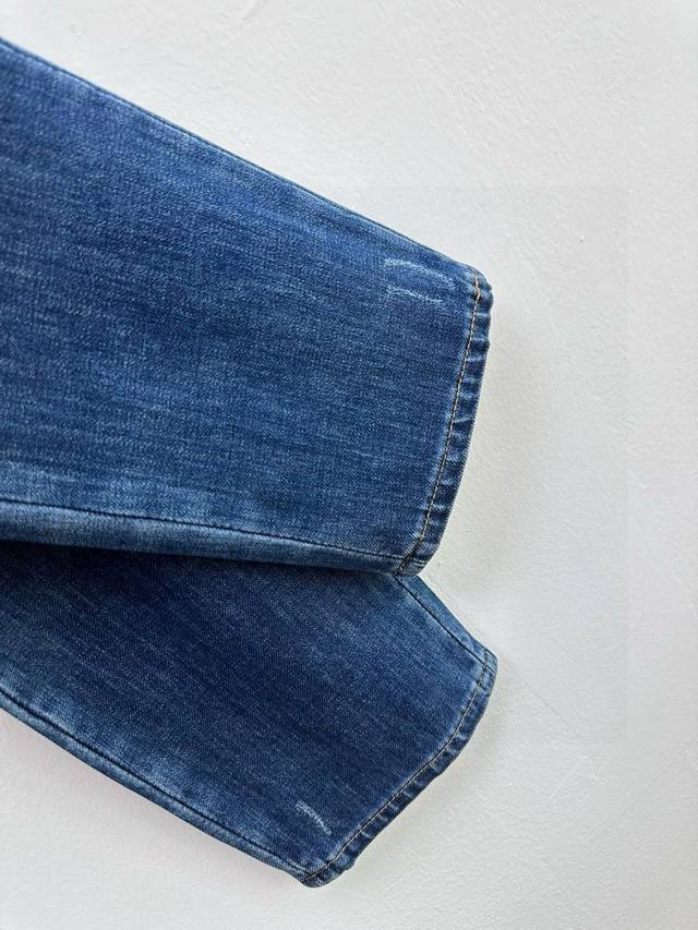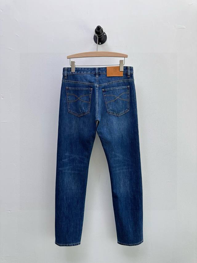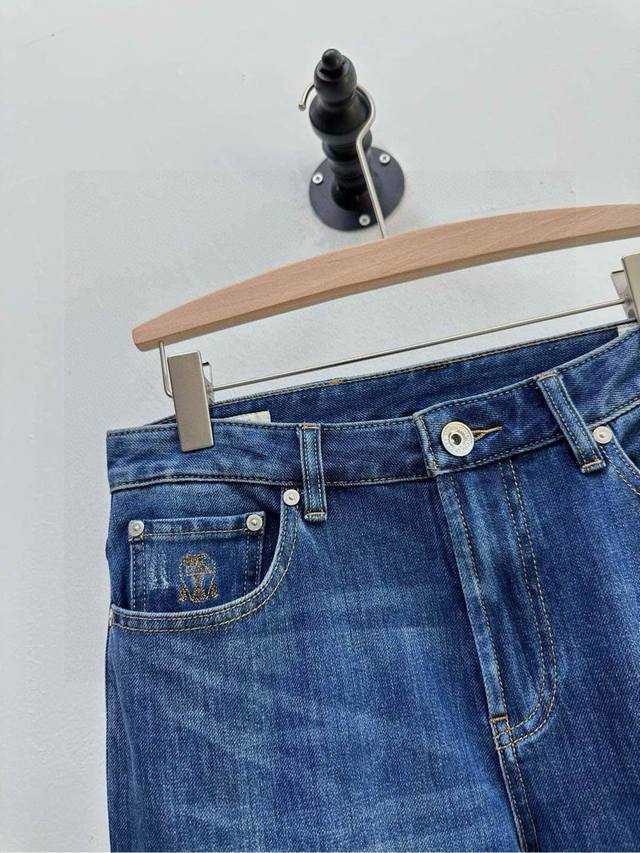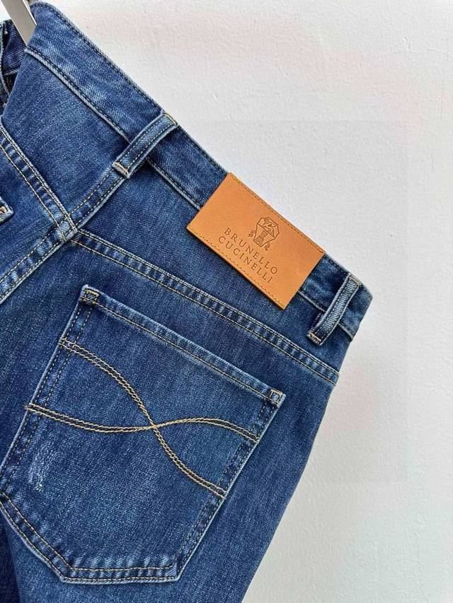 Bc Five-Pocket Embroidered Logo Jeans DDD Stretch Denim DDD Early Spring Collection DDD Dense and Soft, Comfortable and Stylish DDD Slim Straight Leg Fit DDD Stone-washed indigo blue tone, classic, fresh and natural, casual and versatile. The unique indigo denim fabric is cleverly paired with a slim straight leg cut, creating a chic and clean silhouette that makes the figure appear longer and more upright. The leather logo design at the back waistband showcases Bc's unique understanding of modern elegance and sophisticated fashion. The embroidered logo pattern on the front pockets adds a touch of distressed design, preventing monotony and allowing for easy pairing. DDD Custom Logo Hardware Accessories DDD Size: 30-38 (excluding 35) DDD Size 30: Waist 78cm, Hips 100cm, Crotch 29cm, Length 103cm DDD Note: True to size, stretchy DDD
