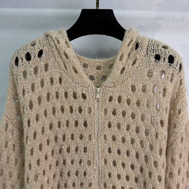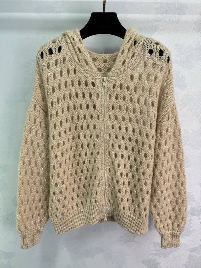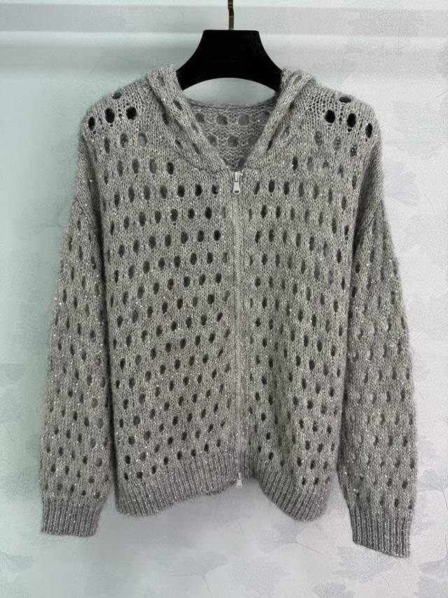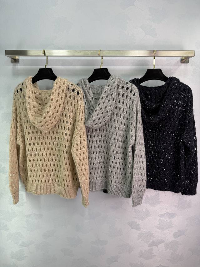 Bc* This new fall/winter sequined, hollowed-out hooded jacket is a laid-back, effortless piece. Perfect for layering in your wardrobe, it pairs beautifully with denim shorts, trousers, or skirts. It exudes a sophisticated, intellectual elegance, yet is sophisticated. Available in three colors and sizes (Sml T226B.