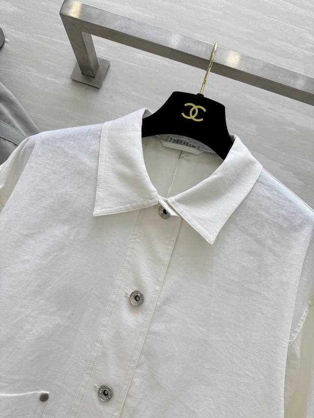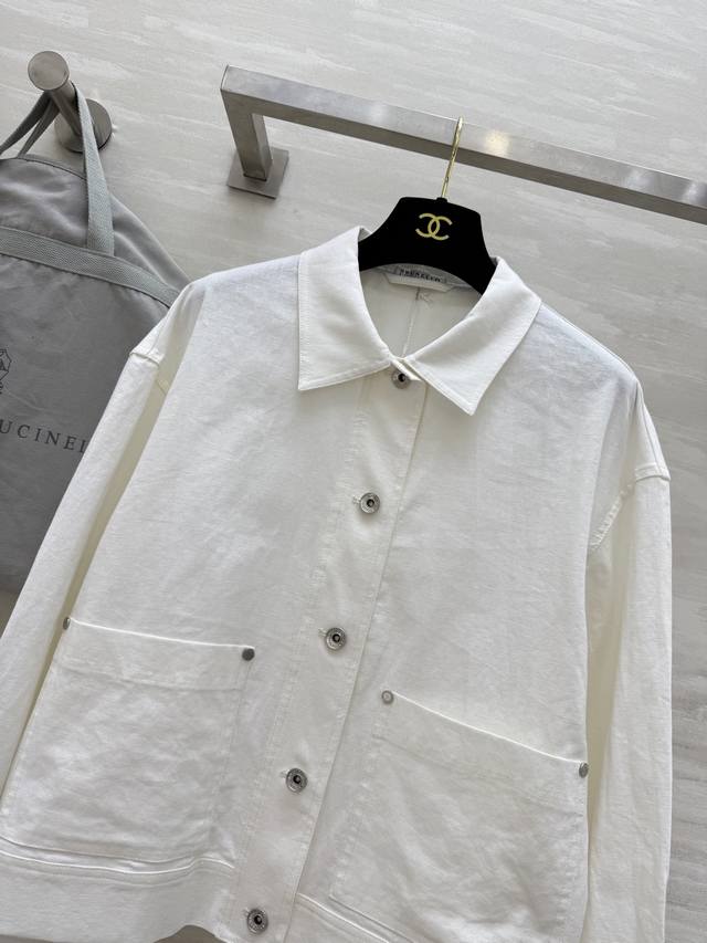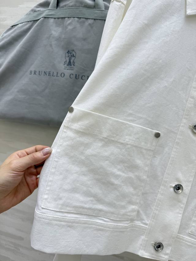 Bc2 Early Autumn new style old money style casual double pocket linen lapel jacket imported 100% linen fabric, light and breathable texture, super awesome copper chain decoration, Italian luxury minimalist style, cool and gentle classic H-shaped shape, suitable for everyone, super slimming, simple and generous style, very sophisticated temperament, relaxed feeling, wardrobe essential items, high-quality customization, spot first release Size: SMLS bust: 102, length: 56
