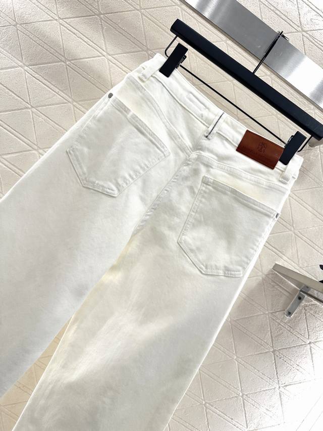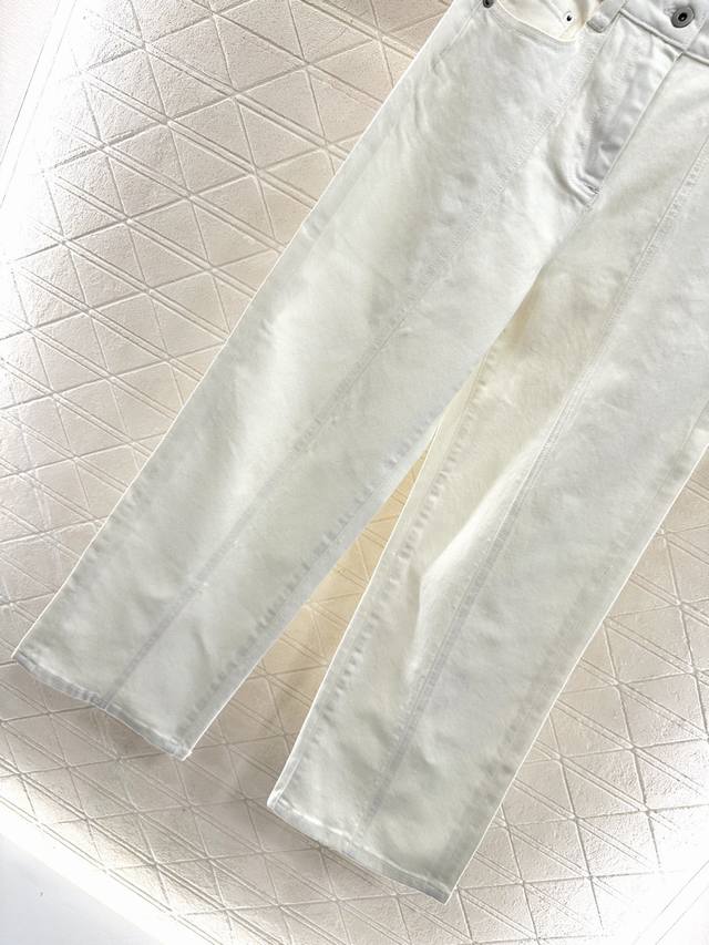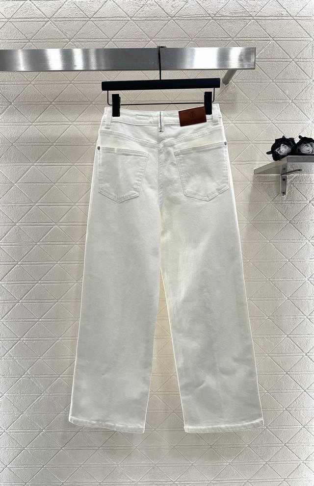straight-leg jeans with leather label. Made of custom Yb twill cotton denim, the fabric is soft, comfortable, and breathable. Repeated enzyme washing process creates a natural contour along the mid-thigh, highlighting the texture. High-waisted, round buckle design. Totem leather label at the back waist instantly elevates the brand's style. The high-waisted, straight-leg design is effortless, age-reducing, and accommodating. It modifies leg shape while creating a relaxed and casual look. Perfect for vacations, dates, and daily wear. Customized fabrics and accessories. Look for the high-end