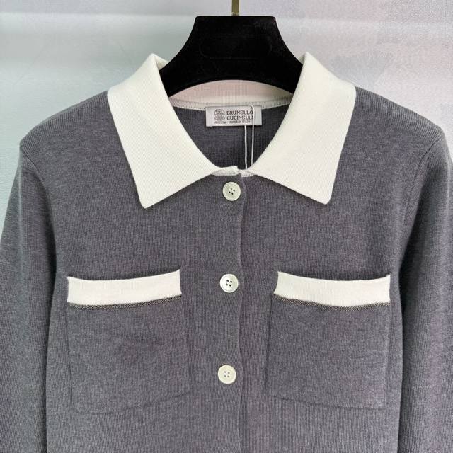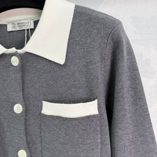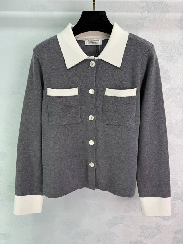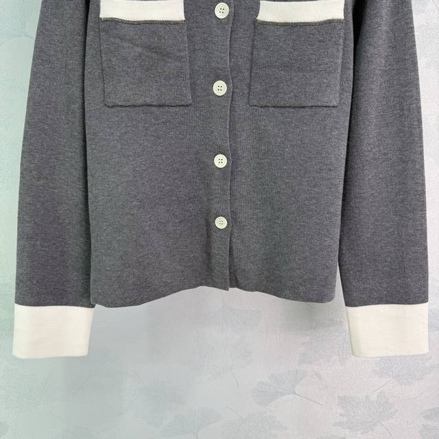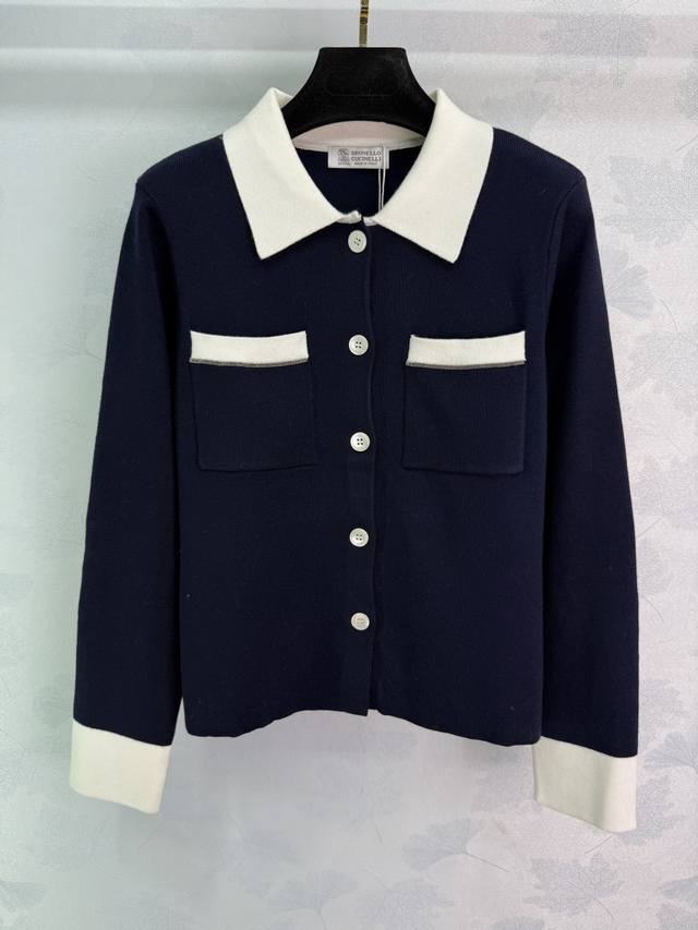 Bc*25 Early Fall, Chanel-style knitted cardigan with a lapel design and white collar. Double chest pockets and contrasting cuffs. Simple, generous fabrication. Comfortable, refined workmanship. Regular fit. A versatile, everyday style for fall and winter! Available in 2 colors and 3 sizes. Sml T226B.