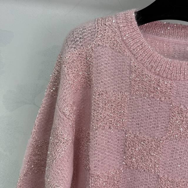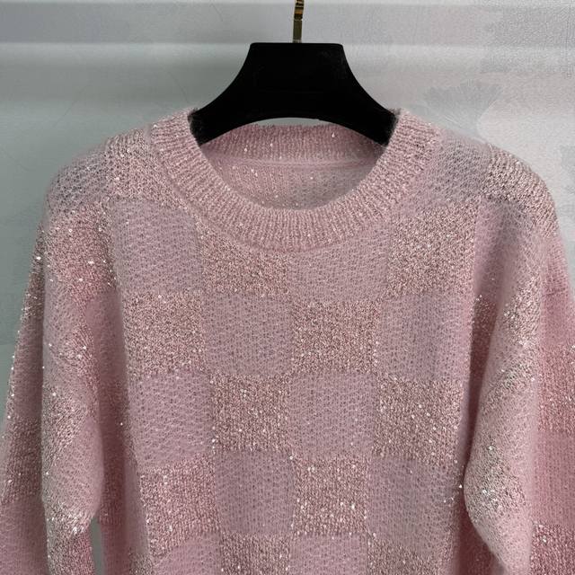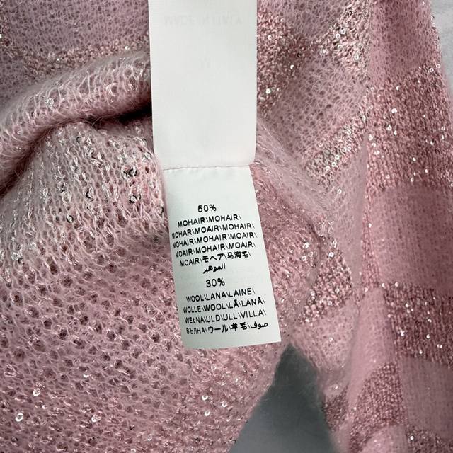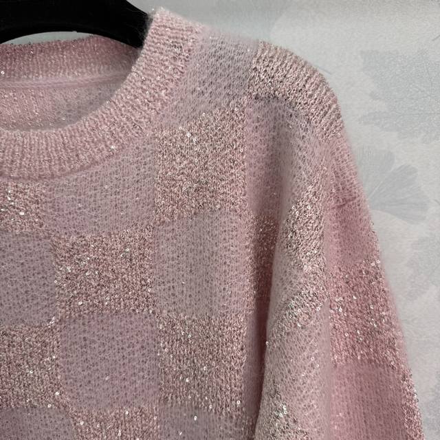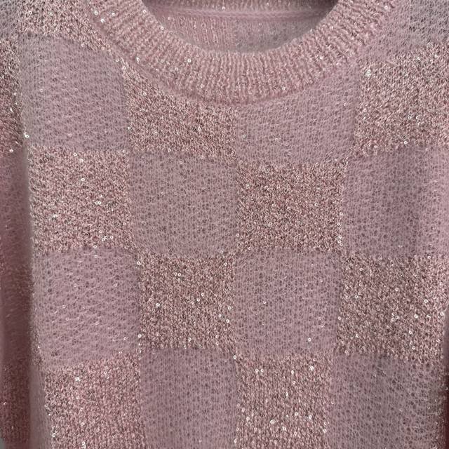 Bc*25 New early fall knitted long-sleeved top with sequin embellishments creates a lightweight, luxurious feel. Glittering sequins encased in fine, high-quality yarn radiate a vibrant, warm glow. The mesh cutout design is lightweight and breathable, creating a striking and captivating look. This top exudes understated luxury. 1 color, 3 sizes. Sml.