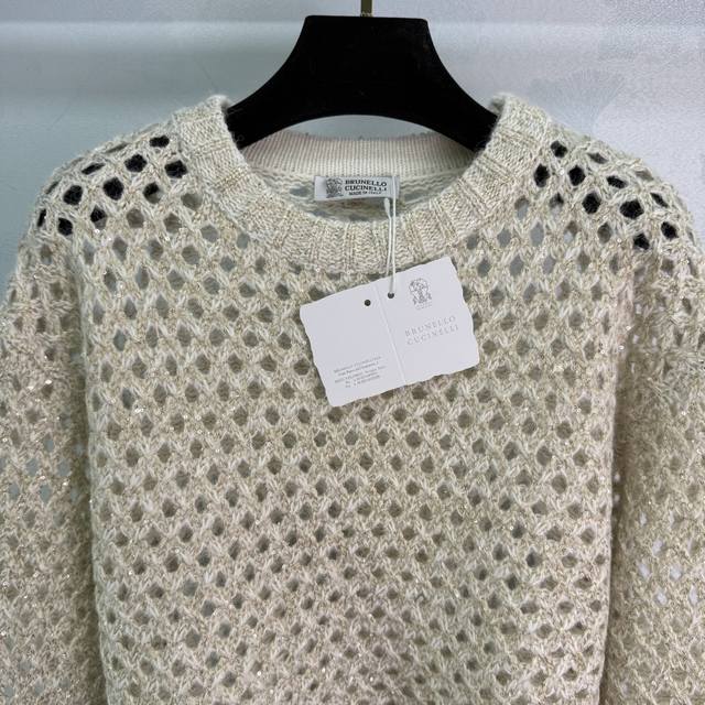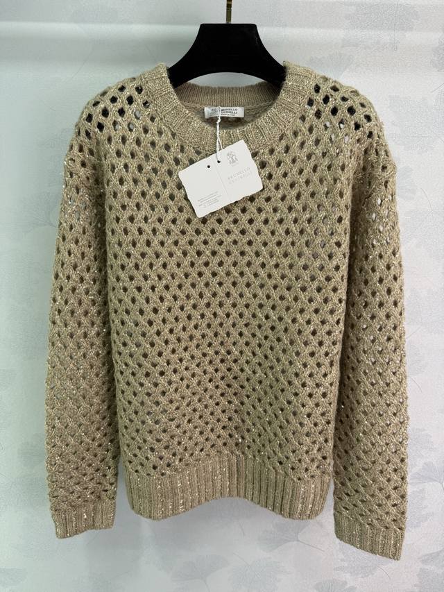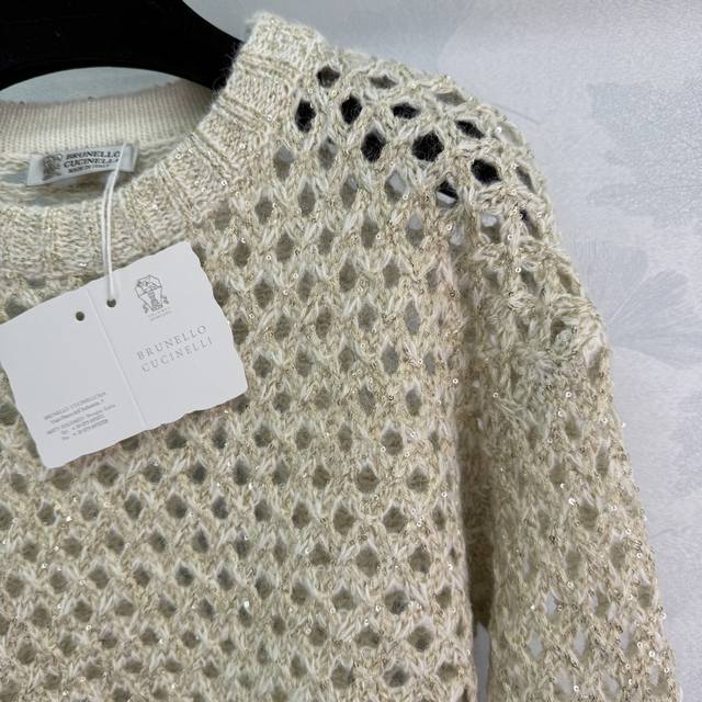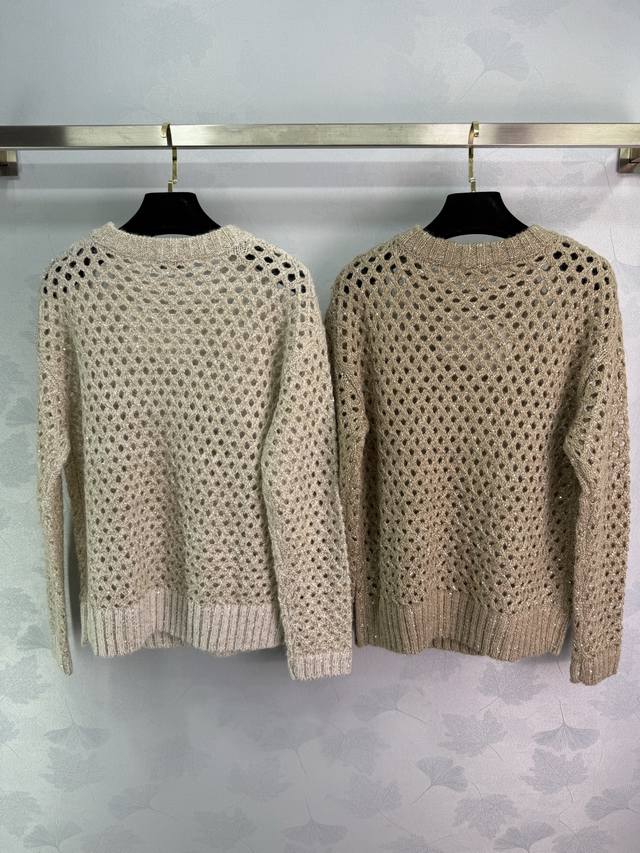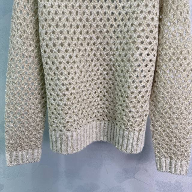 Bc*25 New Fall/Winter Sparkling Diamond Yarn Collection, a vintage-inspired look. Dazzling gold-threaded, hollowed-out crocheted wide-sleeved top. Luxurious and exceptionally custom-made, made with Italian-imported specialty yarn and infused with high-shine sequins. Luxurious and beautiful, Swiss-machined crocheted craftsmanship. Round neckline, H-cut design creates a youthful, understated, luxurious feel. Slightly dropped shoulders create a casual, elegant, classic look that flatters everyone. Ultra-slimming! 2 colors, 3 sizes. Sml T226B.