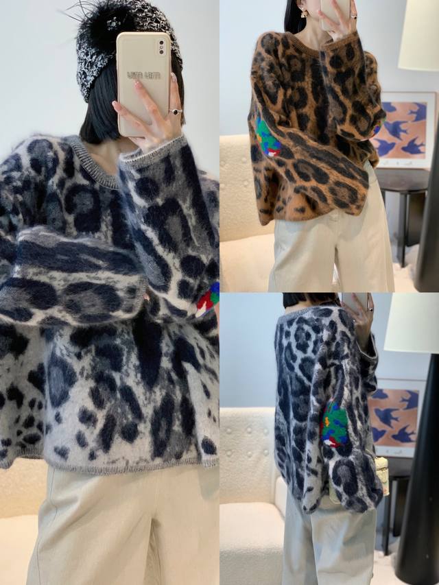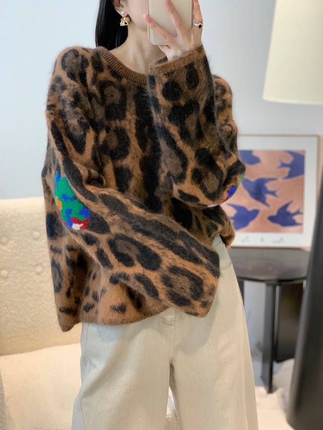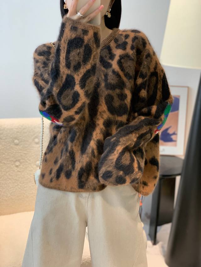 / Beixiong Fleece Leopard Print Pullover Sweater, Solid Color, One Size DDD