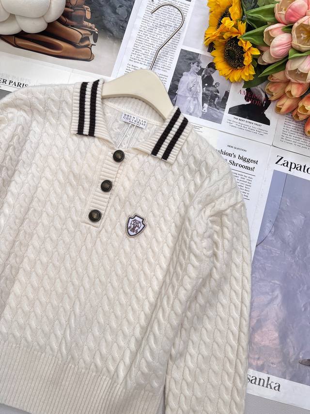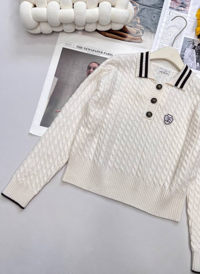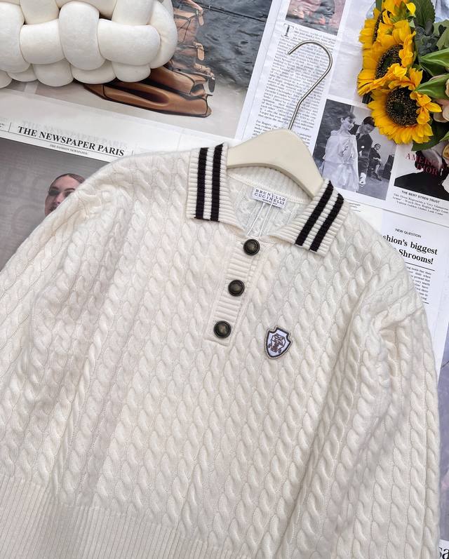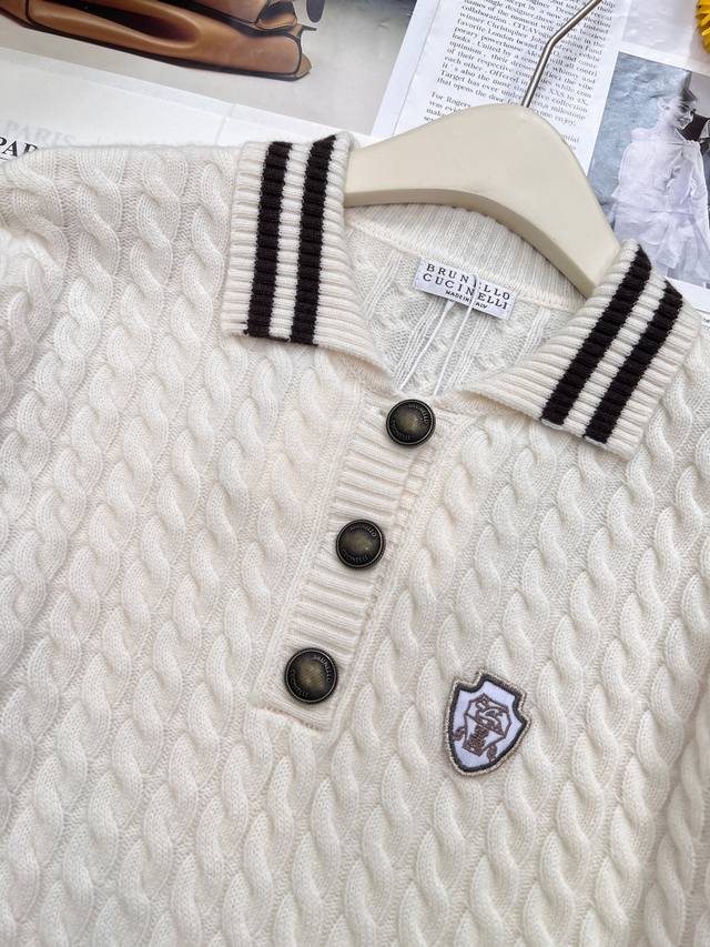 Brunello Cucinelli's new fall/winter 25Fw collection features a youthful, logo-embellished cashmere knit polo shirt. Available in an exclusive, high-quality version! This timeless, minimalist design effortlessly creates an urban chic look. The retro, three-dimensional cable knit enhances the vintage aesthetic. The three-dimensional, structured panels and orderly cable knitting enhance the design and create a distinctly elevated aesthetic. This is a beautiful fusion of aesthetics and craftsmanship, creating a stylish and slimming look. Fully stocked,
