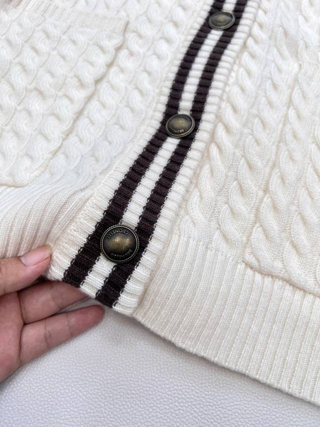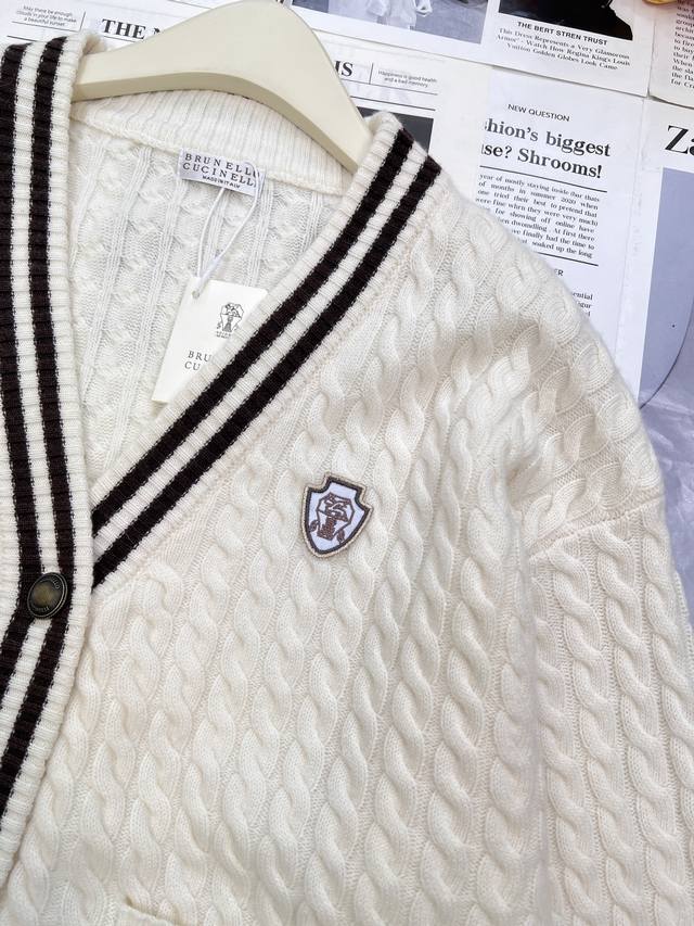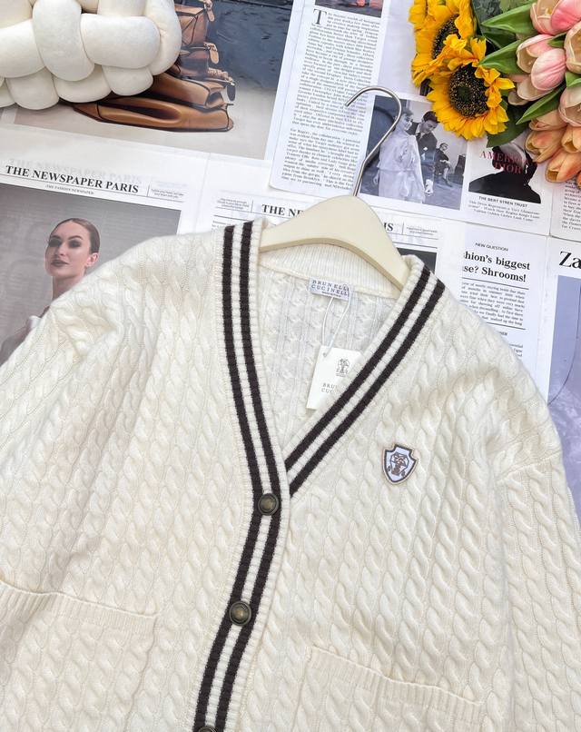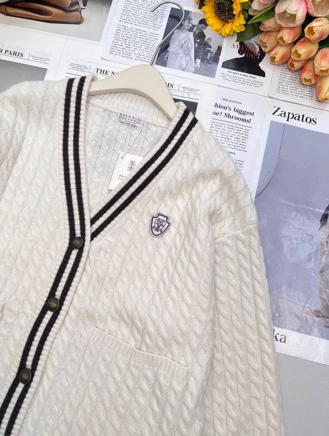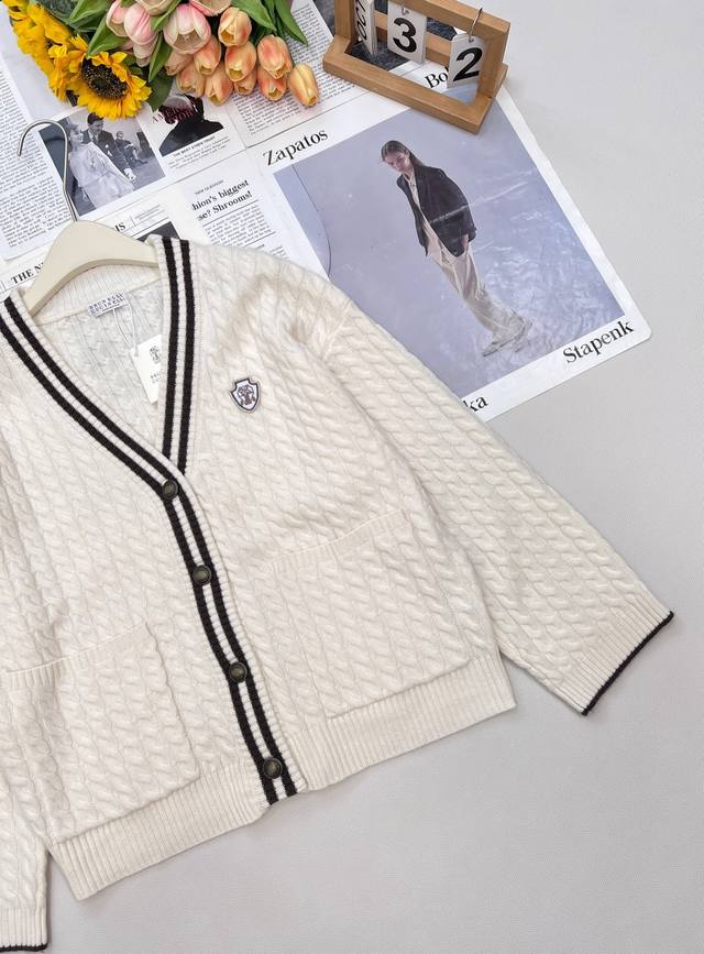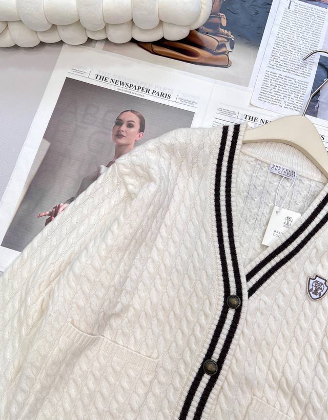 Brunello Cucin*Lli 24Ss's new autumn/winter collection features a youthful, logo-embellished V-neck cashmere knit cardigan . This exclusive, high-quality cardigan is an enduring, minimalist design that effortlessly creates an urban chic look. The retro, three-dimensional cable knit enhances the vintage aesthetic. The sleek, three-dimensional panels and orderly cable knitting enhance the design and create a refined aesthetic. This is a beautiful fusion of aesthetics and craftsmanship, creating a stylish and slimming look. All three labels are complete, and the product is in stock. Sizes S, M, D, D, and B are available.