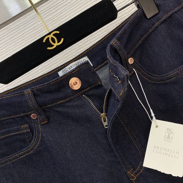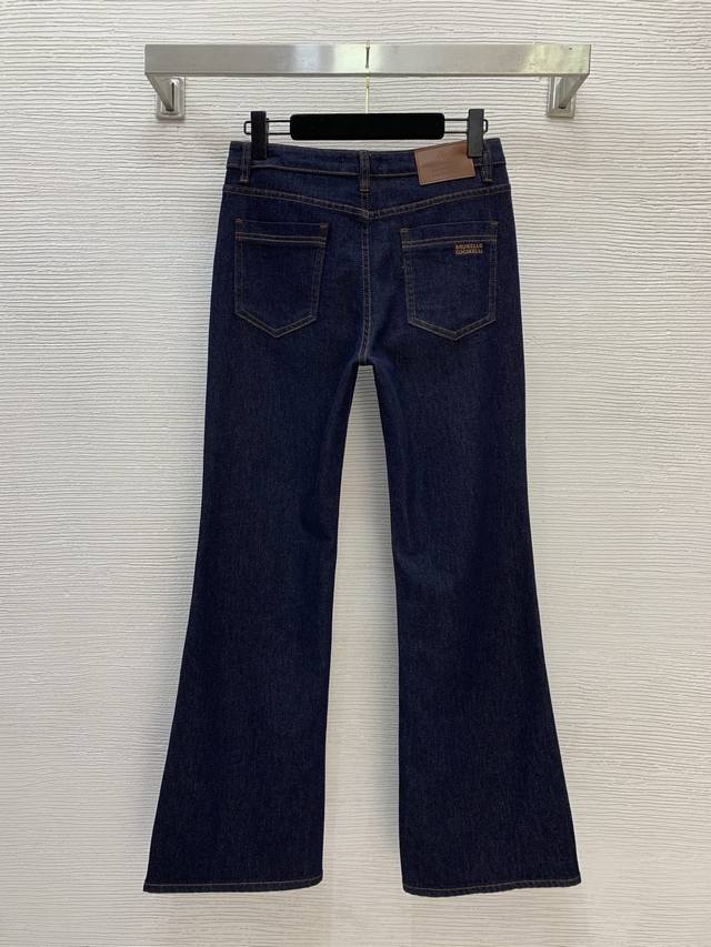 Brunello*Bc's new high-end custom-washed soft denim fabric, featuring letter logo hardware, YKK zipper fly, slim fit, hip-lifting, and slightly flared jeans! Dark blue, --- Size M: Waist 74cm (no stretch), Hips 88-94cm, Length 105cm. Fabric slightly stretchy.