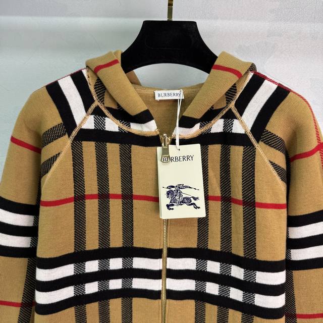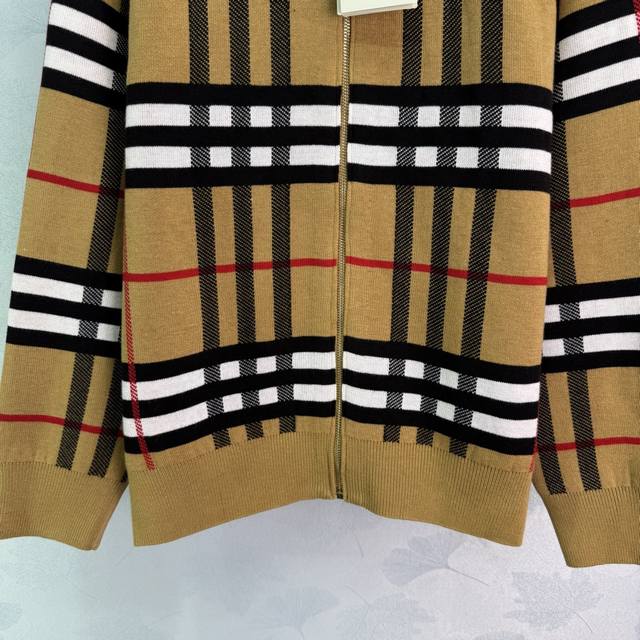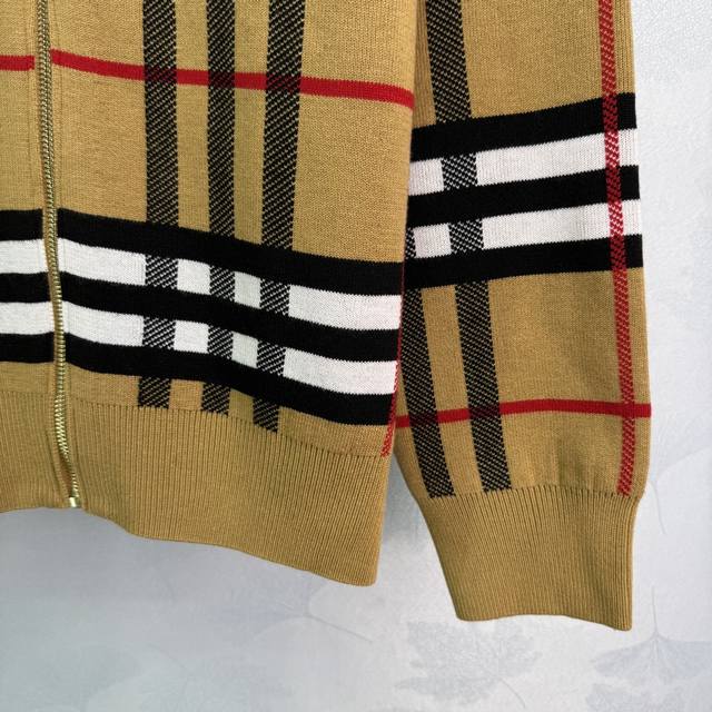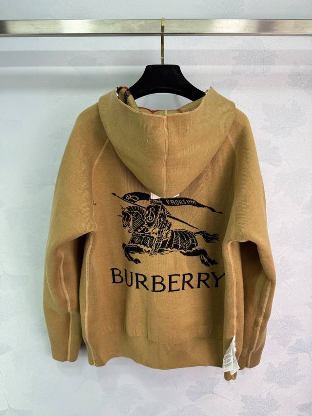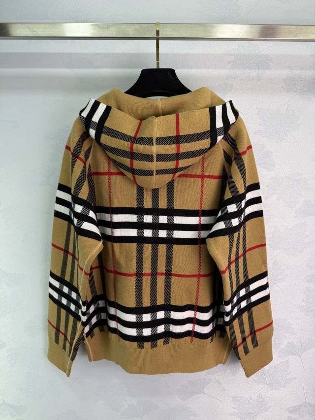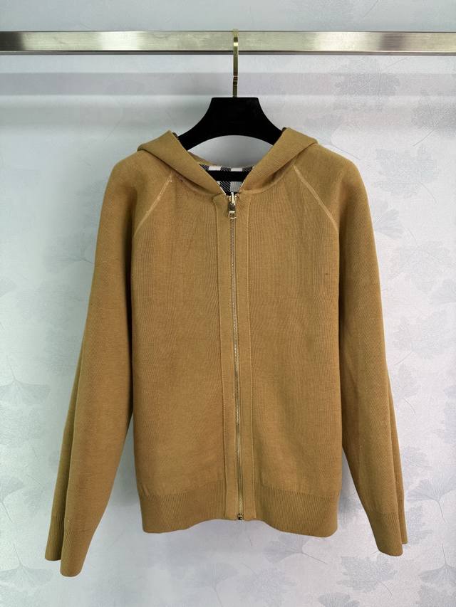 Bu* 2025 Early Fall new double-sided plaid hooded knitted jacket! Custom YB wool knit material for a comfortable, skin-friendly, and warm feel. The hooded zippered sweater is easy to put on and take off, creating a relaxed fit that showcases the brand's understated luxury. The cuffs, collar, and hem feature elastic threads, a hidden design on the reverse, and a crocheted, lettered warhorse pattern on the back, showcasing a sporty, casual fall/winter look! One color, three sizes. Sml T226B.