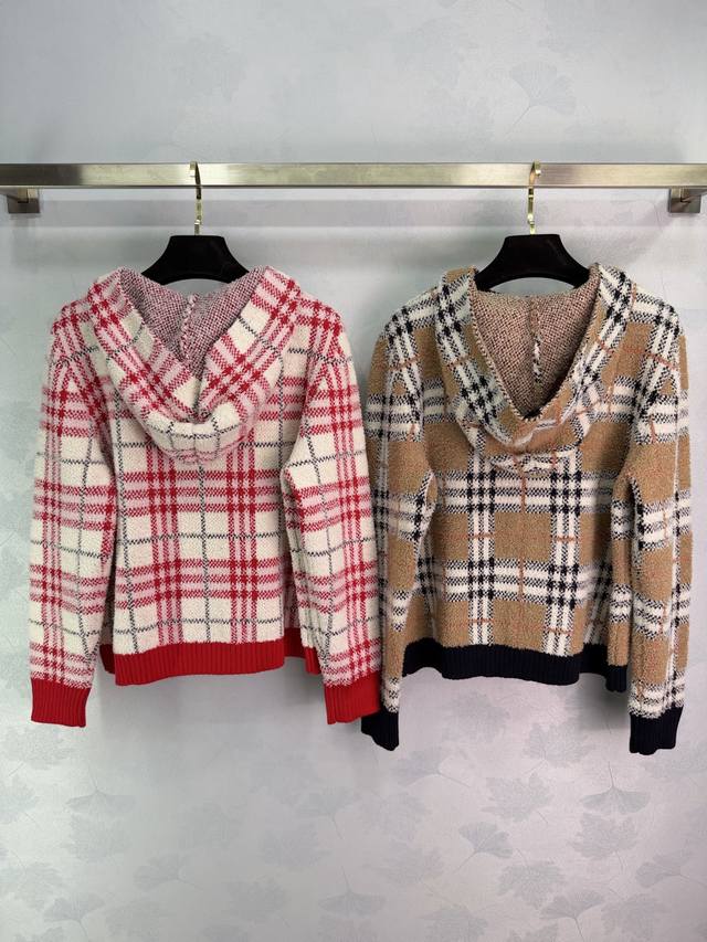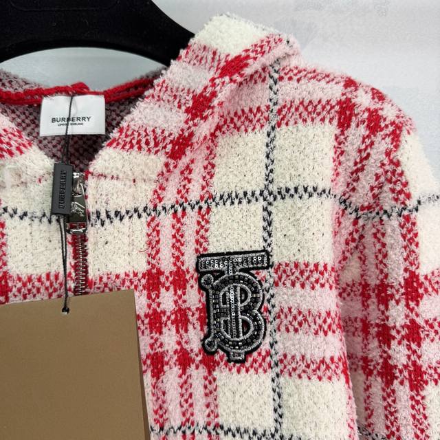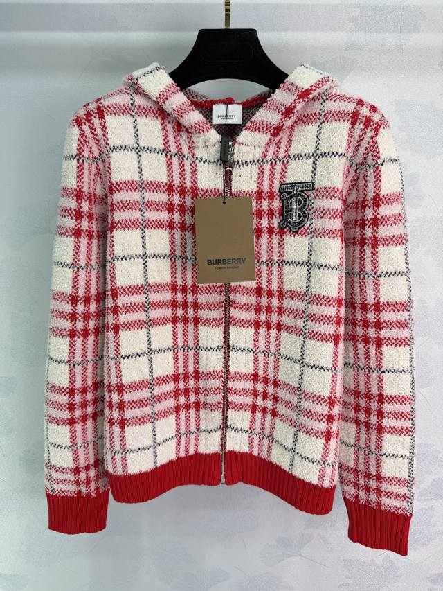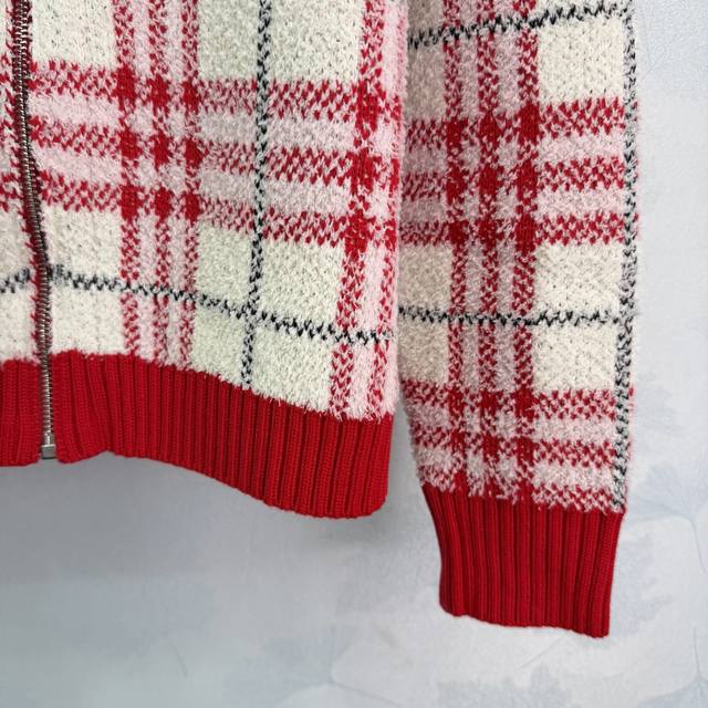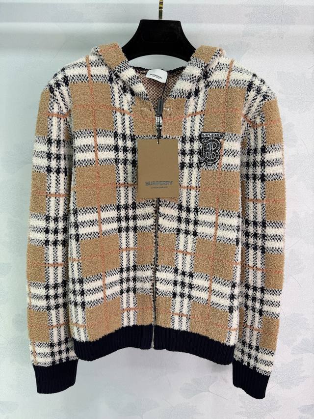 Bu*25 Autumn/Winter New Classic Plaid Knit Cardigan. Featuring a Scottish plaid design, exuding British style. Made from a high-quality wool blend, it's soft and warm. The zipper closure makes it easy to put on and take off. The brand badge embroidery on the chest adds a touch of sophistication. Pairs well with casual pants or jeans. Suitable for both work and leisure. 2 colors, 3 sizes: S, M, L, T, 2, 6, B. DDD