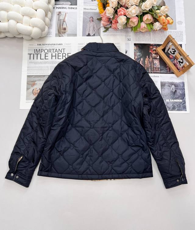 . This vintage diamond check quilted jacket features a reversible, chic, and timeless check pattern. The black side is made of waterproof and windproof polyester! Suitable for both men and women!