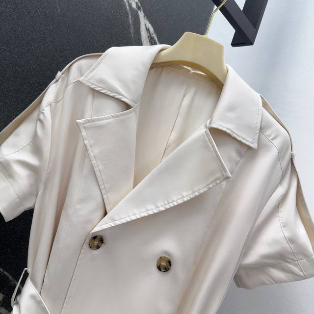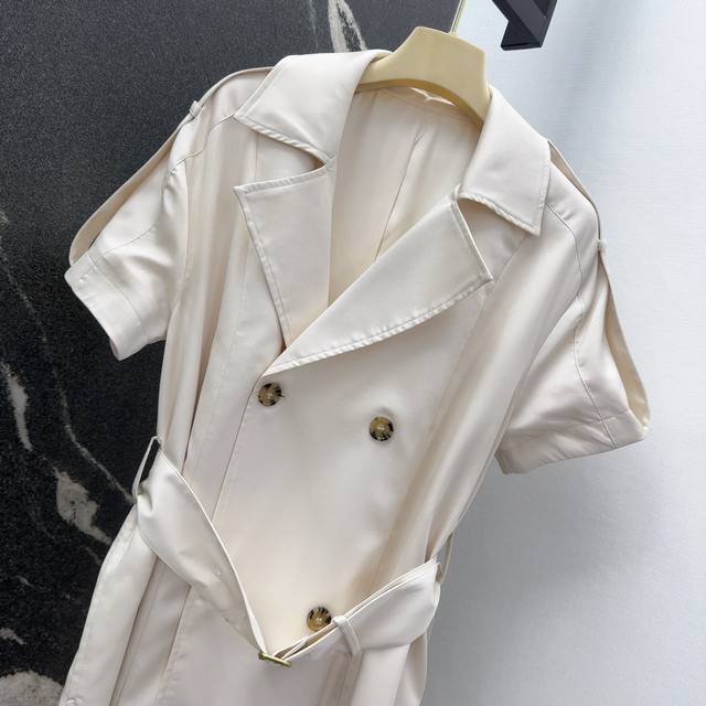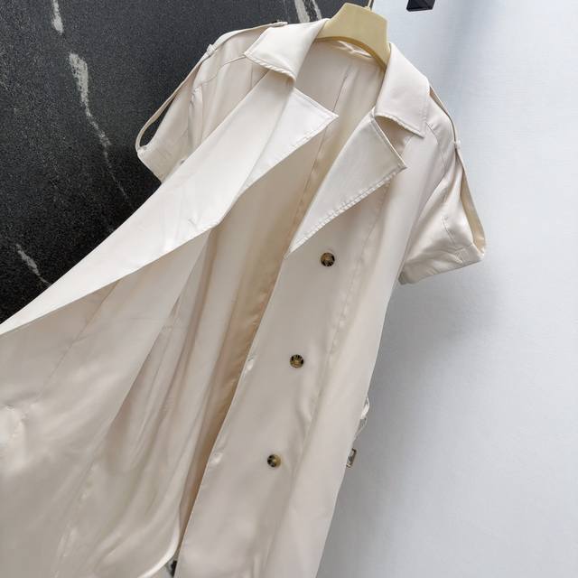 Bur 25Ss Spring and summer new classic double-breasted trench coat dress Cream-c