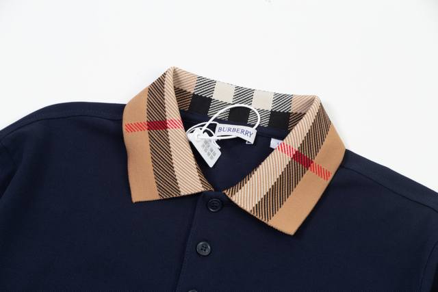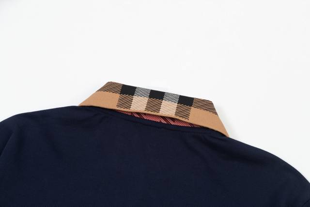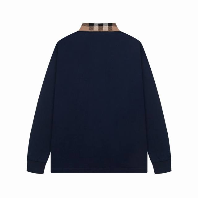 Bur New lapel long-sleeved Polo shirt with classic plaid collar logo, custom letter logo buttons, details in place, made of 100% cotton pique, comfortable to the touch, equipped with buckles, three complete labels