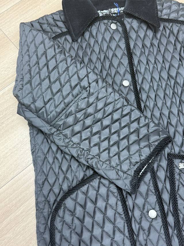 Bur New VIP Quilted Nylon Floriston Jacket DDD This quilted jacket features a refreshed, boxy silhouette inspired by the English countryside. Crafted from glossy nylon with contrasting corduroy trim, it boasts raglan sleeves for a relaxed fit. DDD