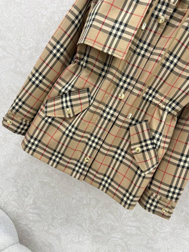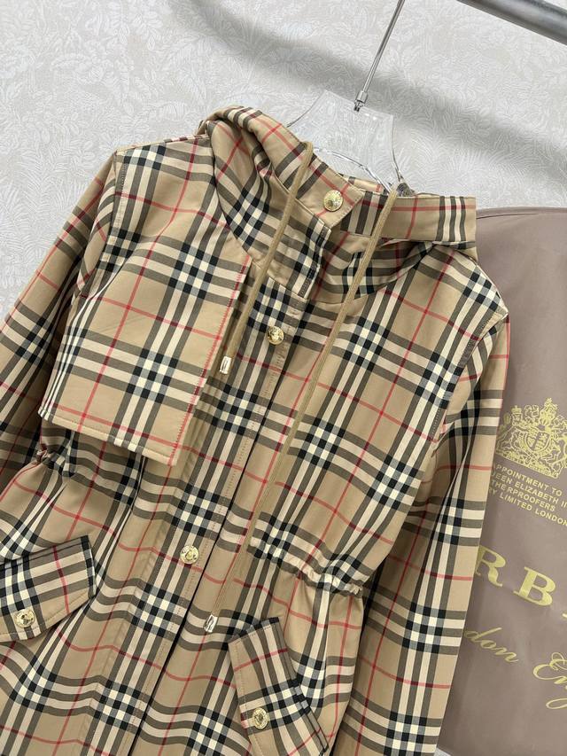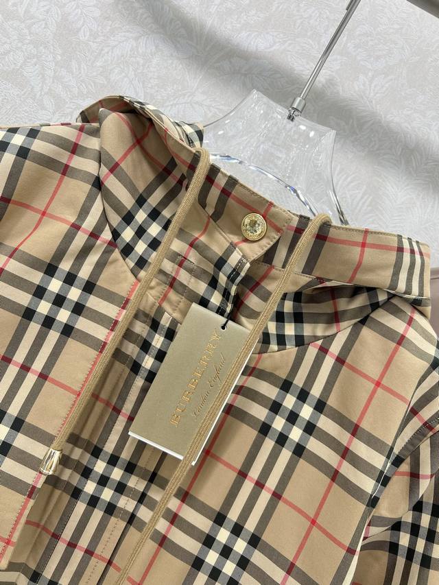 Burber*Y 25 Early Autumn new checkered coat Classic English style Customized hardware Original one-to-one customization Perfect version Super love, drawstring elastic waist H version upper body slim and cool. Hooded drawstring design handsome and casual without losing the girlish feeling! Counter open mold Logo hardware accessories Perfect workmanship quality see the details! Dust bag not included Single color 4 size Smlxlb