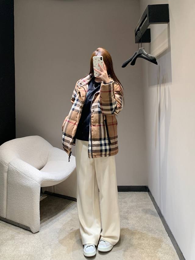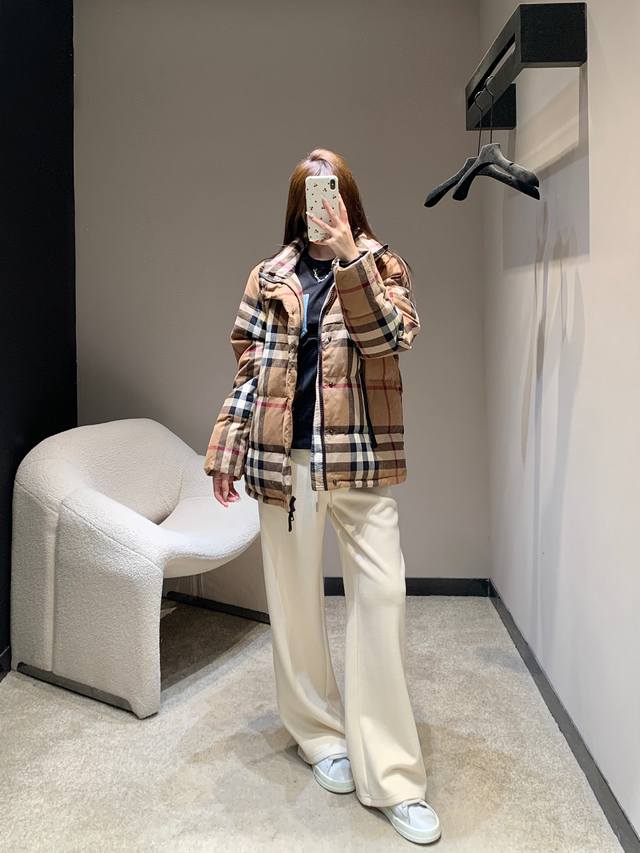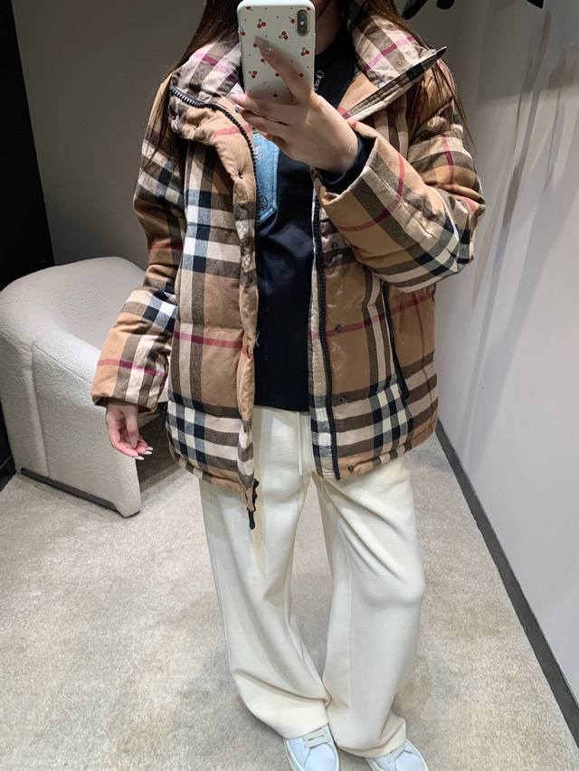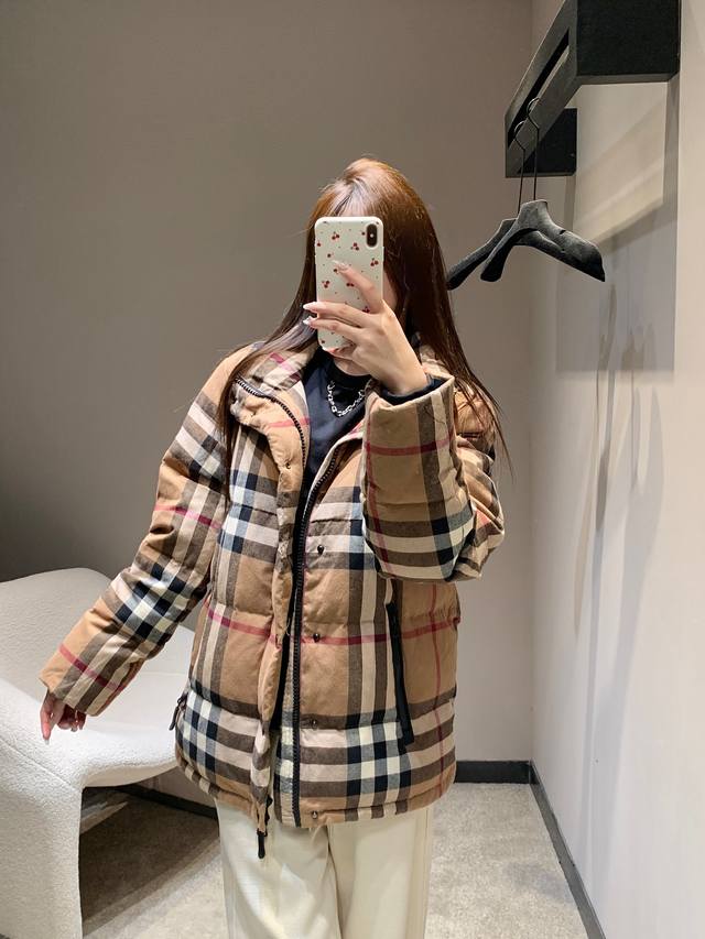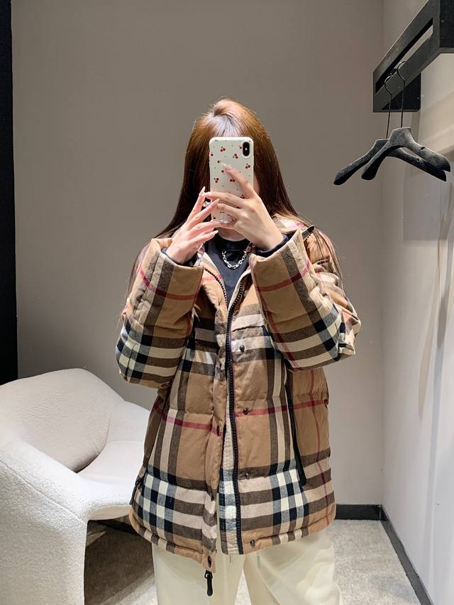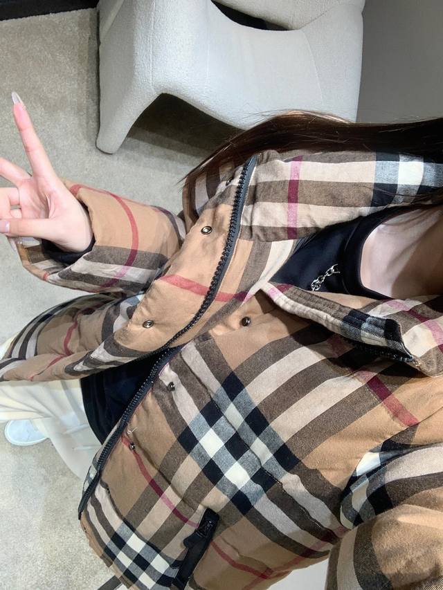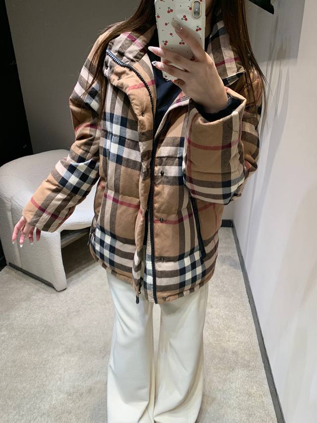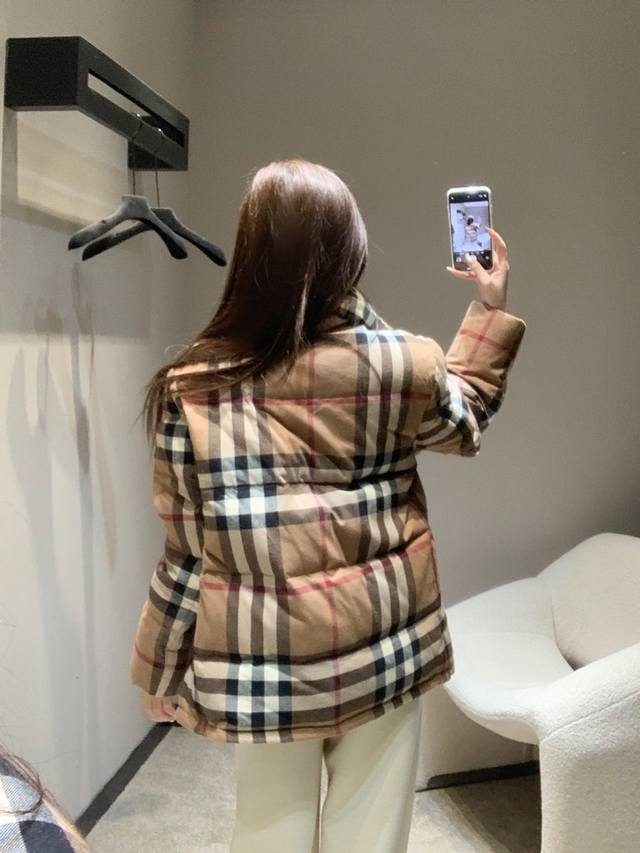 Burbe*Ry 25Fw Autumn/Winter New Classic Plaid Retro Warm Down Jacket | Exclusive Yb Development! High-Quality Production! Wrapping British retro style in fluffy warmth, the camel-brown base interwoven with red and black lines creates an instantly recognizable high-end feel. Lightweight down filling, warm without feeling heavy; the plaid fabric has a natural crispness, balancing style and practicality; stand-up collar + full zipper + side pockets, the slightly loose fit adapts to various inner layers; metal snap buttons in the details subtly appeal to the brand's attention to detail! Unisex, in stock, SML DDD
