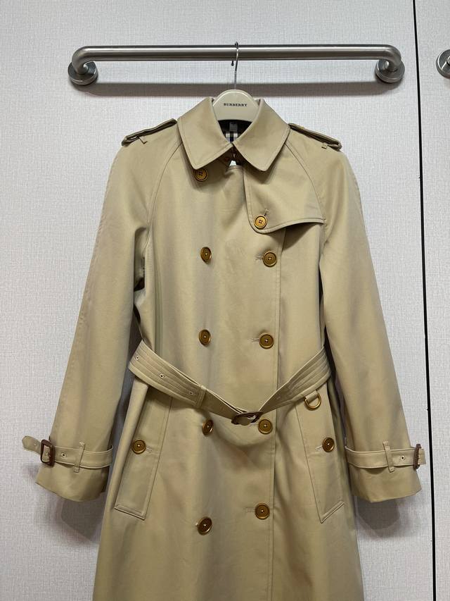 . This iconic Castleford-style trench coat is meticulously crafted in our Yorkshire workshops from protective gabardine. The lining and collar are crafted from Burbery check cotton, a material widely used in the brand's outerwear since the 1920s. The regular fit features raglan sleeves and vintage-inspired hardware.