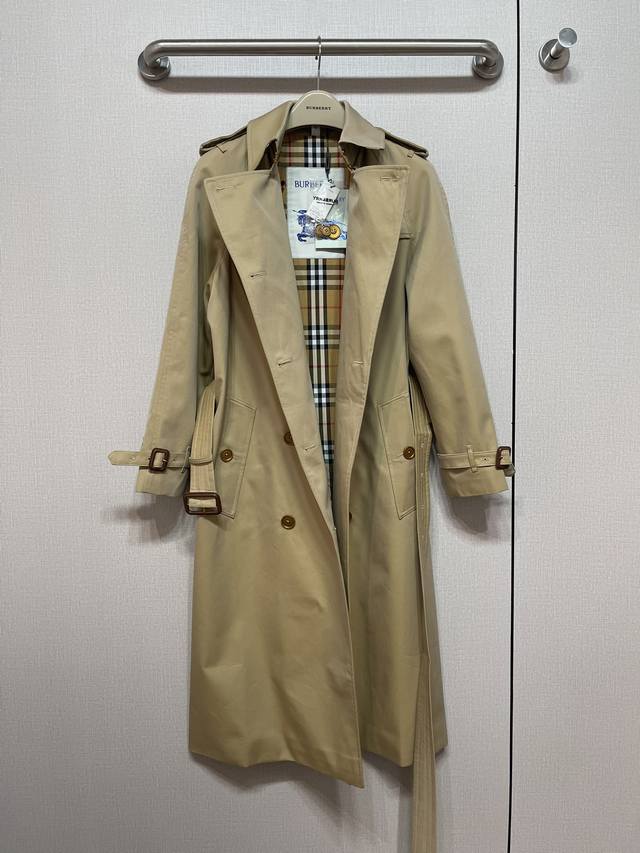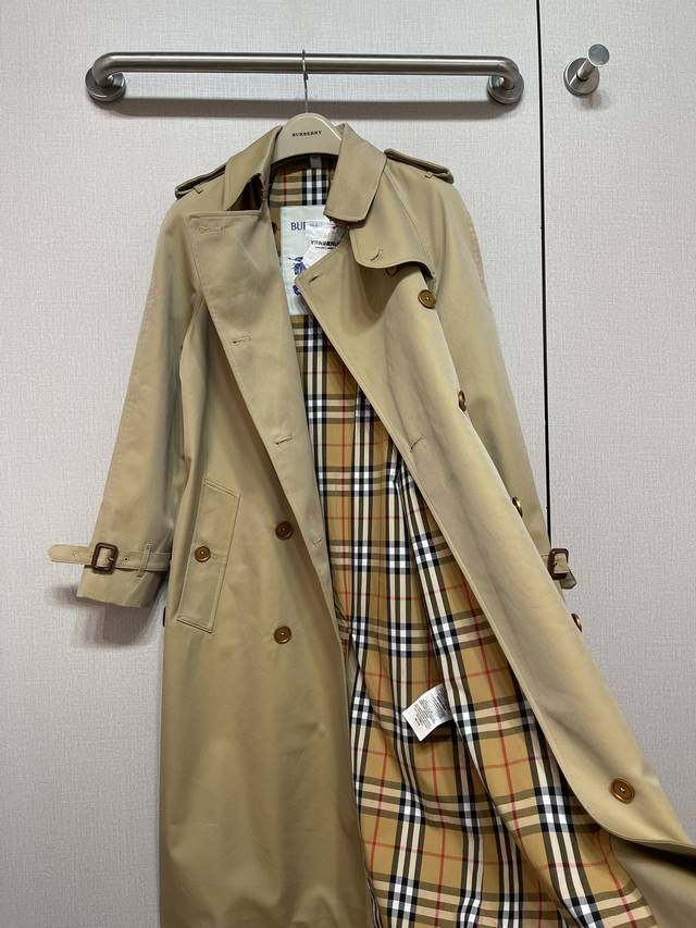 Burber-Y Long Trench Coat with Plaid Collar and Metal Buttons. Includes counter dust bag.