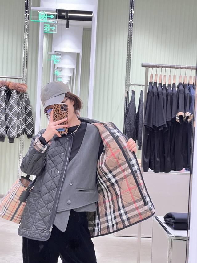 Burb*Rry 25Fw's new fall/winter classic diamond-quilted jacket | Exclusively developed by Yb! High-quality version! Inspired by the century-old plaid pattern and innovative silhouette, this jacket embraces minimalism. The classic plaid pattern is visible on the inside of the cuffs, creating a recognizable brand identity and infusing the overall look with a British retro vibe. Large pockets not only highlight the design but also enhance everyday practicality, allowing for a casual, effortless look. A versatile choice, it combines cool and elegant styles. Available in sizes S, M, L, and