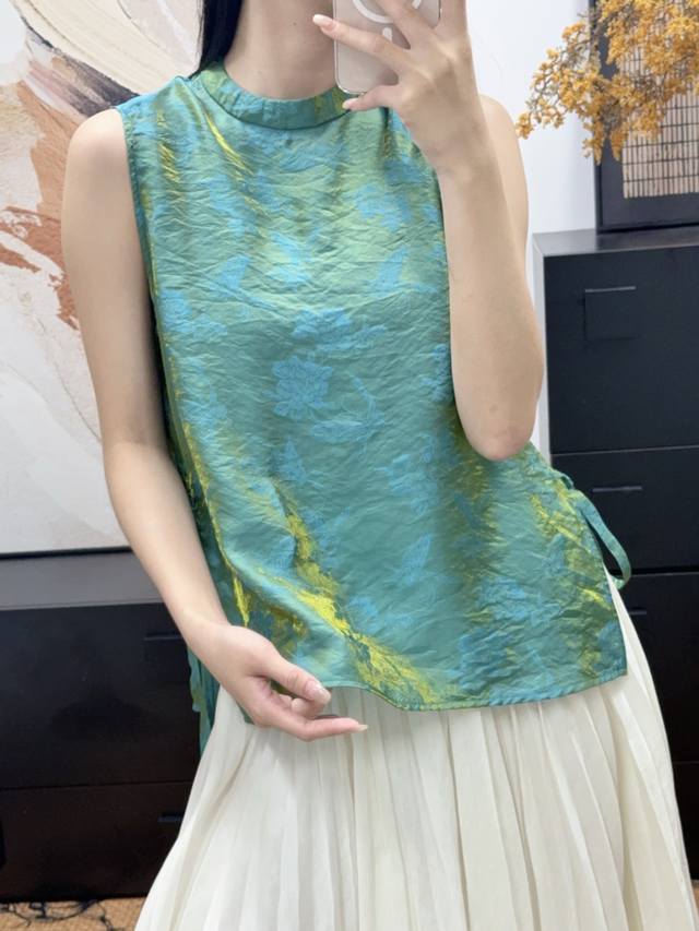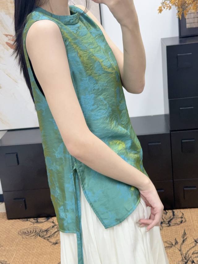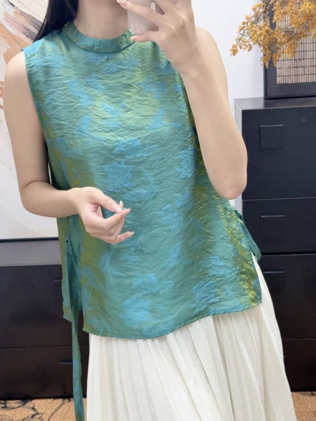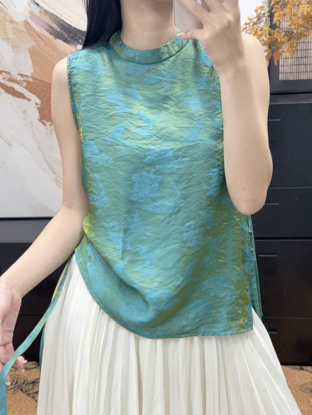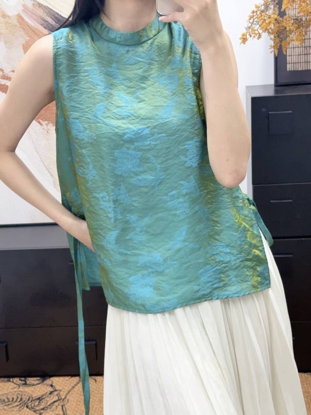 Butterfly interwoven rayon floating light high collar slim version, blue interwoven emerald green, jacquard texture like flowing light and shadow, rayon fabric is skin-friendly and breathable, with a high-end glossy feel, it looks particularly good with any combination Smlxl