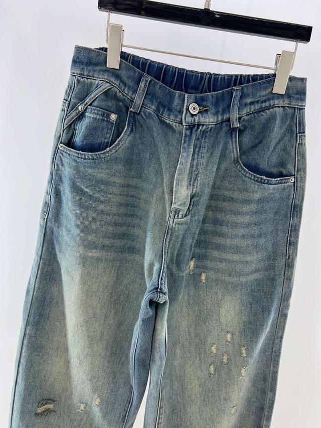 Bv high ounce distressed washed blue jeans A must-have for high-end players and