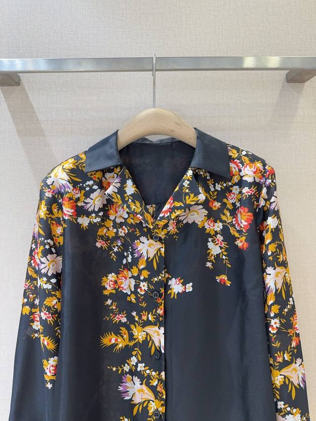 Black Various Floral Pattern Shirt