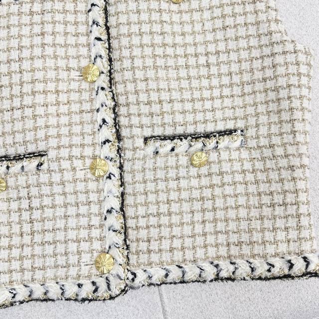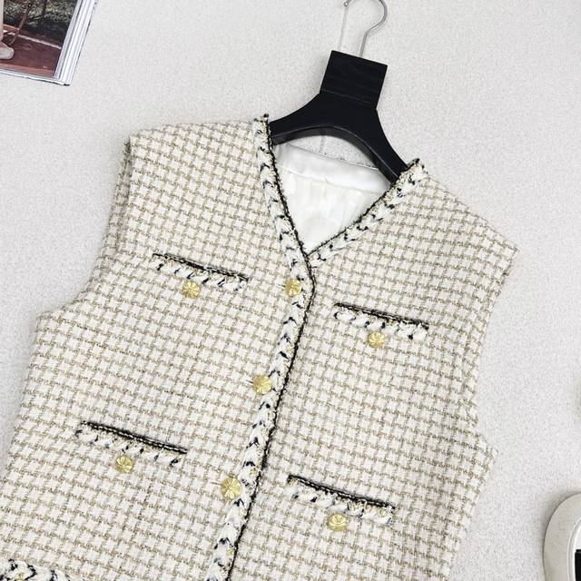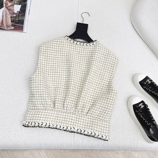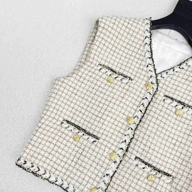 C Brand 25Ss Autumn/Winter Newest Chanel-Style Woven Tweed Vest. Exquisite high-quality woven fabric, even more beautiful in person, with a three-dimensional texture and exquisite feel. It exudes a noble temperament. Custom 3D tailored cut, incredibly slimming, highly wearable, and even more stylish. A French socialite style, elegant and sophisticated, a must-have for wealthy heiresses. Available in one color, S, M, L. Size S: Bust 102cm, Length 51cm. Manual measurement may have errors. DDD