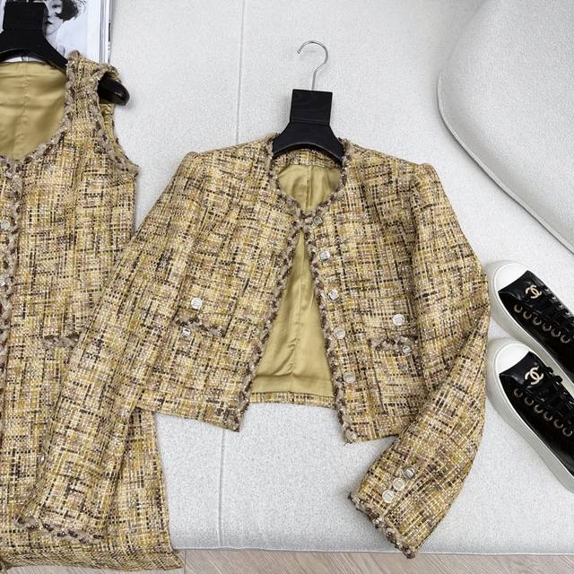 C Brand 25Ss Autumn/Winter Newest Double Pocket Decorated Crew Neck Knitted Jacket. Exclusively developed knitted fabric with a sophisticated feel. The retro color scheme and crew neck are very elegant and generous. The waist-length cut flatters the figure! Suitable for parties and everyday wear. Recommended for matching outfits. Available in stock in sizes S, M, and L. Size S: Shoulder width 38cm, Bust 92cm, Length 47cm. Measurements may vary slightly due to manual measurement.