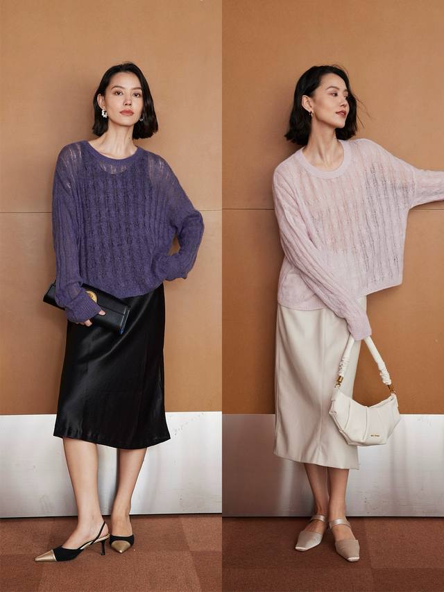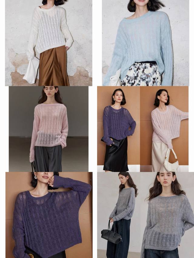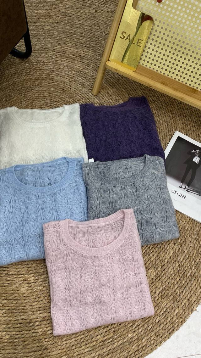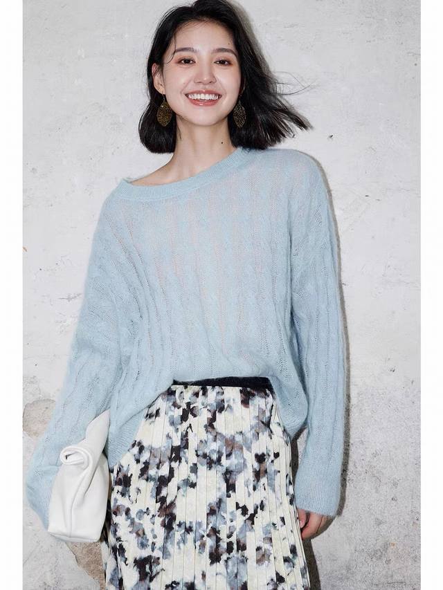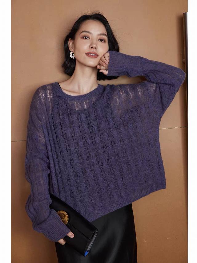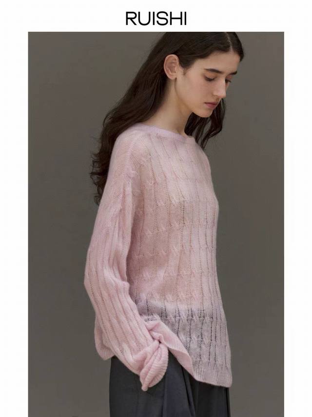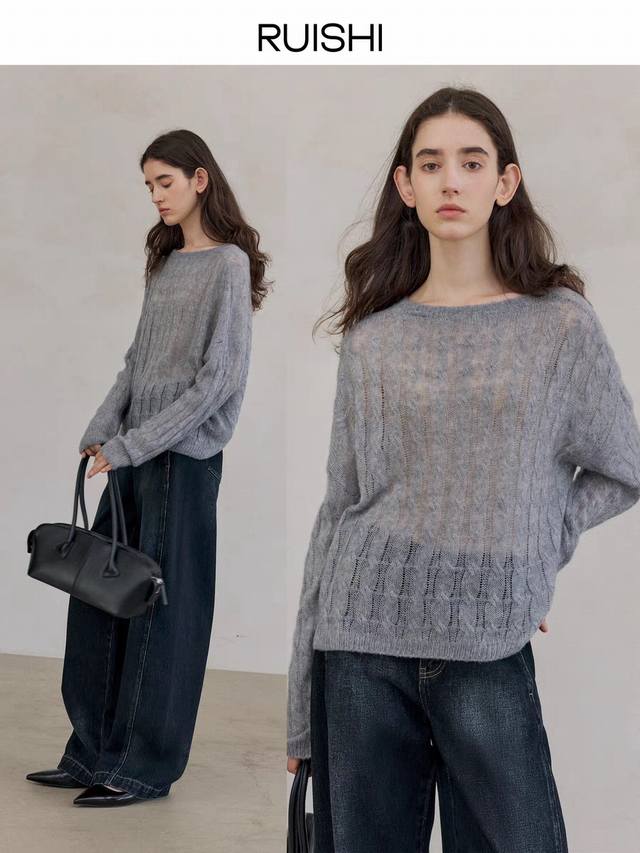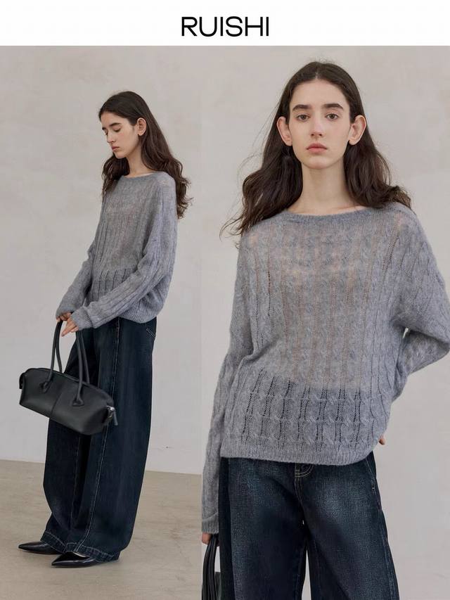 Cable-knitted semi-transparent thin sweater loose lazy retro gentle picture col