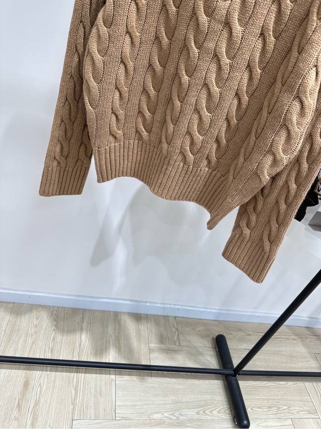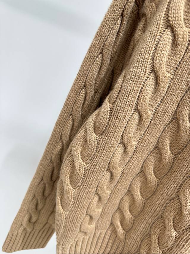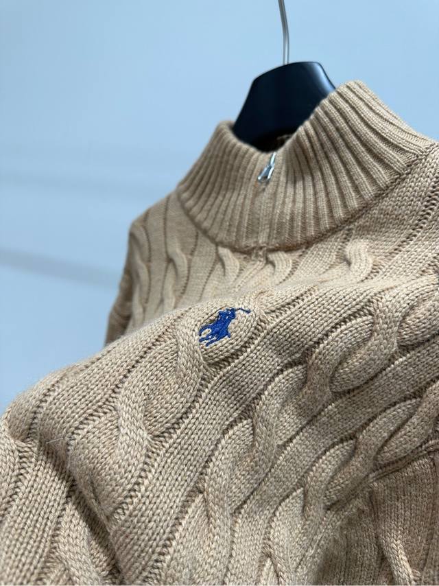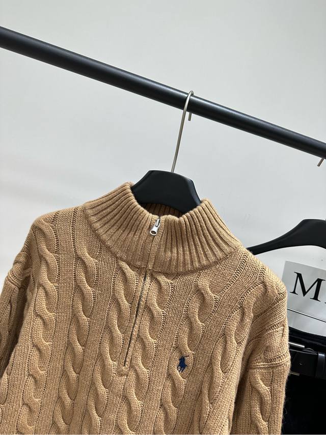 Camel Pony Half-Zip Stand Collar Cable Knit Sweater Ddd 0, Fabric: 100% Wool Ddd Color: Camel Ddd Ralph Lauren Half-Zip Cable Knit Sweater Ddd Classic cable knit texture + half-zip stand collar design Ddd Retro and practical Ddd Soft and warm wool material, super comfortable to wear in autumn and winter Ddd The pony embroidery on the chest is very recognizable Ddd It's okay to wear alone or layered, easy to handle for commuting and leisure~ Ddd Flat size: Ddd S: Shoulder width 50, Bust 106, Length 54, Sleeve length 54 Ddd M: Shoulder width 51, Bust 110, Length 55, Sleeve length 52 Ddd L: Shoulder width 53, Bust 114, Length 56, Sleeve length 53 Ddd Manual measurement may have an error of 2-3cm, which is within the normal range DDD