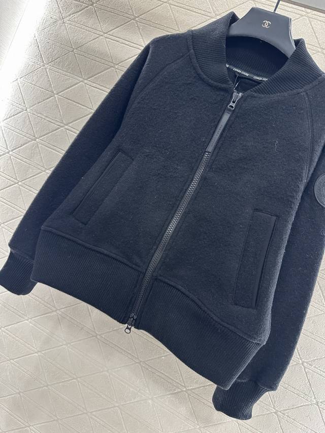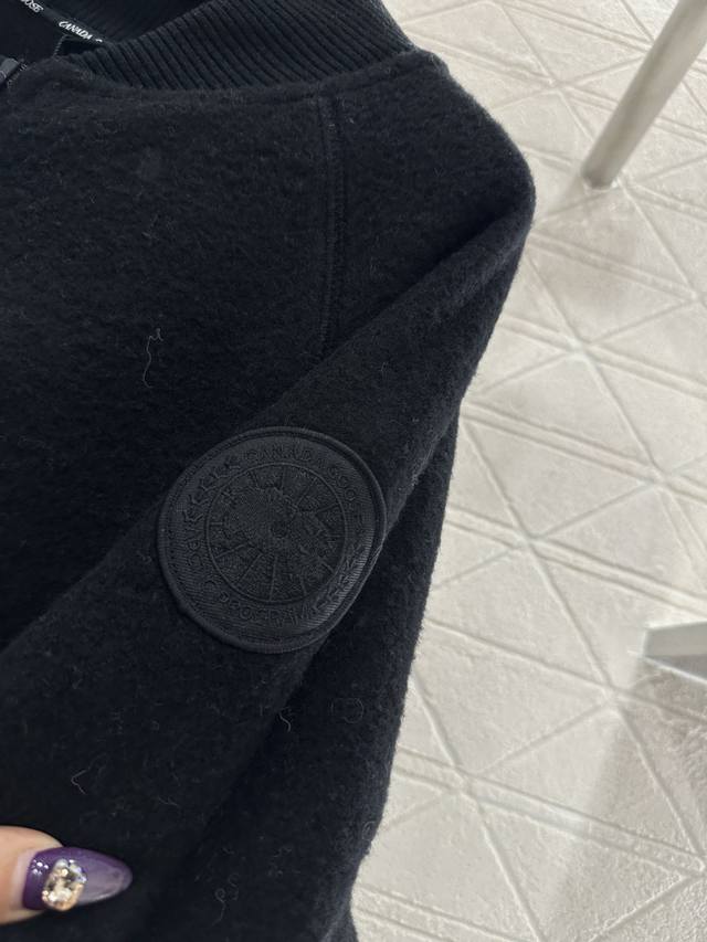 Canada Goos*2025 New Arrival Ddd Wool Baseball Jacket Ddd Custom Yb Imported wool wool material, soft texture, warm and skin-friendly, stand-up collar zip-up baseball jacket style, versatile solid color base, zip-up opening and side sleeve badges in matching colors, outlining details and highlighting highlights, with knitted vertical ribbed elastic tapering for a slimming fit and extra warmth, suitable for outdoor and casual occasions, fashionable and trendy. Customized fabric and accessories, look for the high-quality version, 3 colors: black, gray, beige DDD