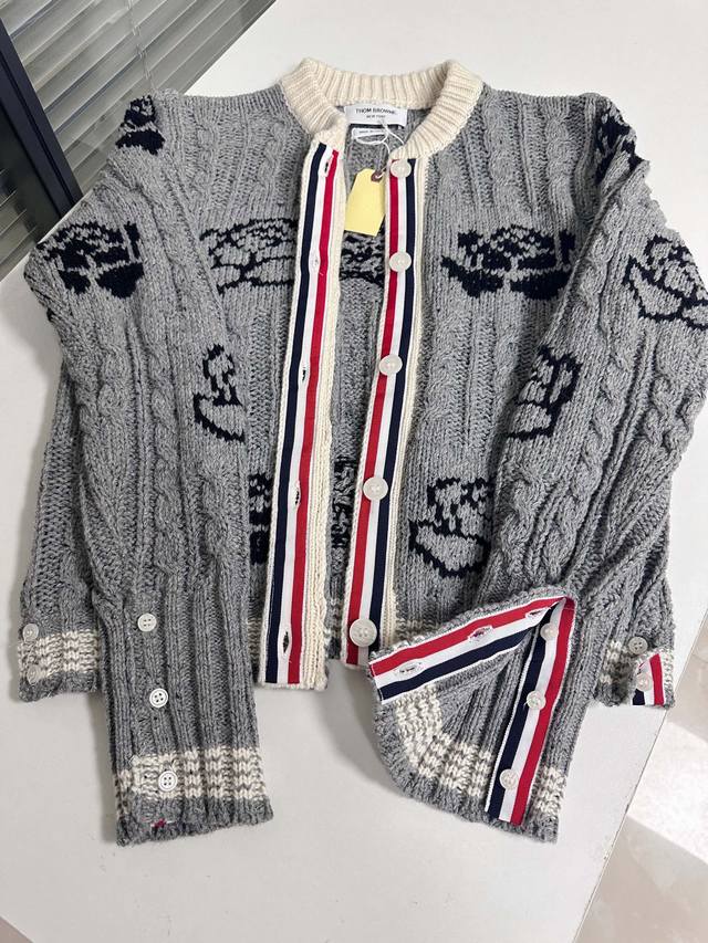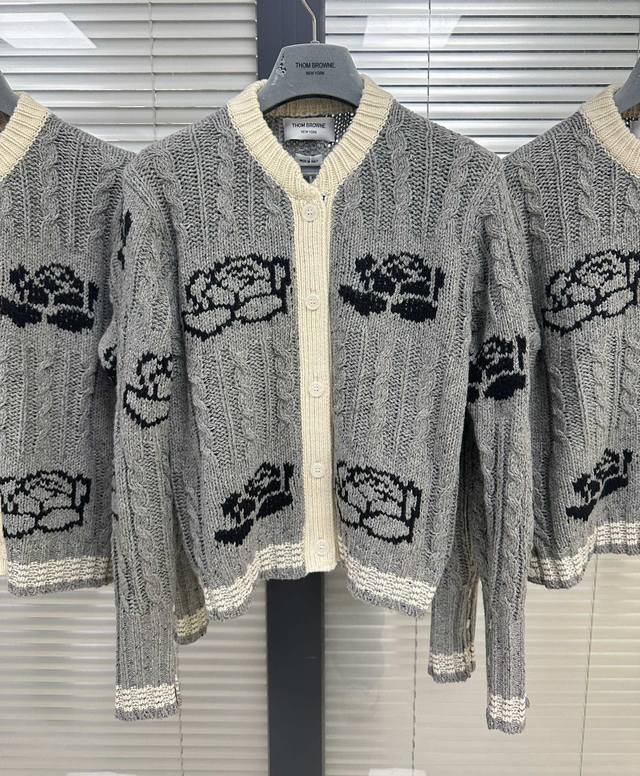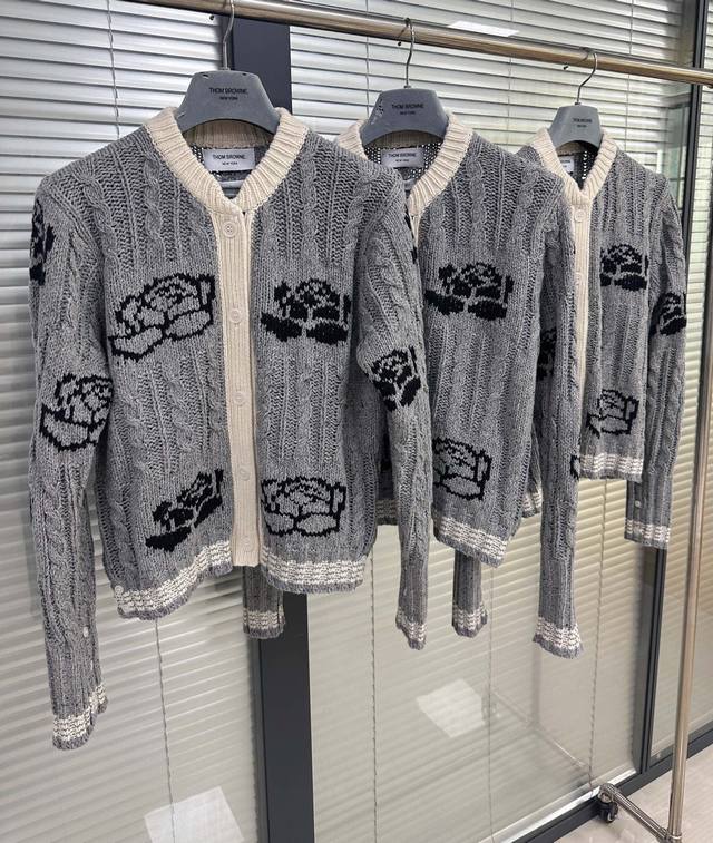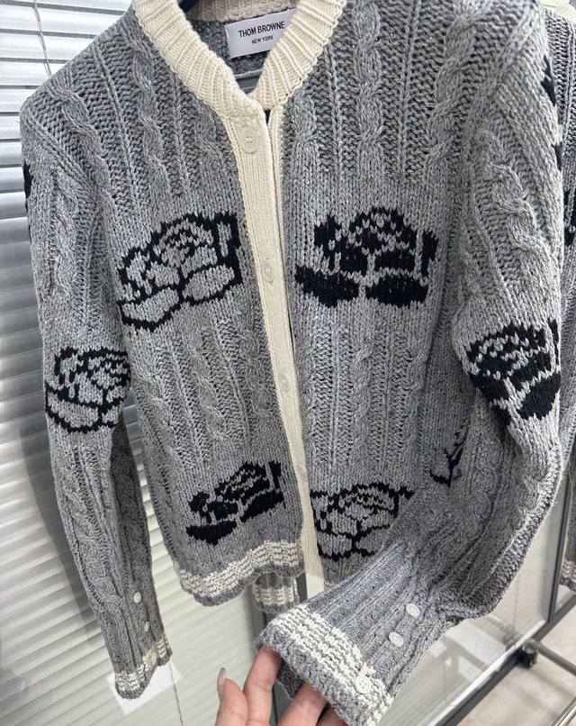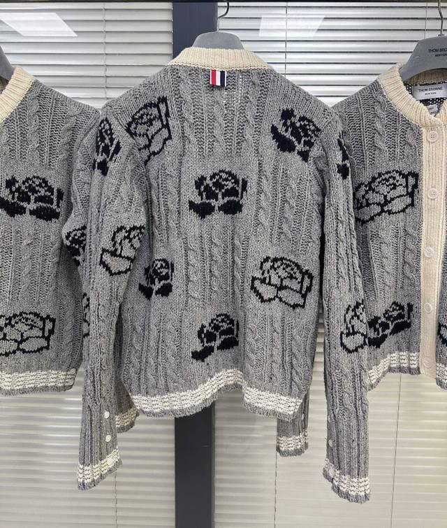 Cardigan 24Fw Women's Chunky Knit Rose Cardigan DDD Made with a three-needle machine knitting technique, featuring an intarsia design. The 12-ply yarn is knitted using a slip stitch, making it very time-consuming; the flowers alone take about 300 minutes to knit. The yarn is dyed, washed, and high-temperature set for colorfastness. It uses a high proportion of worsted wool yarn for a fluffy, soft, and delicate feel. Size: 0 1 2 DDD