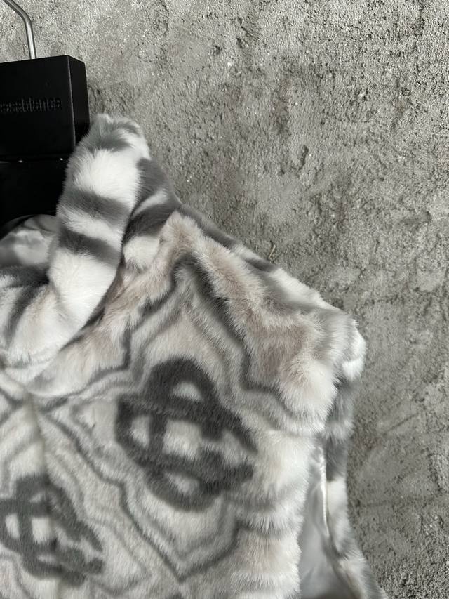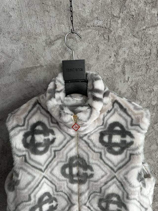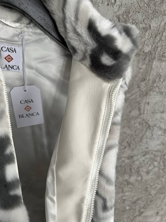 Casablanca 2025 Autumn/Winter Mink Fur Vest, Custom Blend Fabric: 98% Nylon + 1% Spandex + 1% Polyesteramide, Imported Machine-Pulled Jacquard, Hand-Matched, High Fabric Wear, Super Soft Plush, Top-Layer Calfskin + Cupro Lining, Dry Clean Recommended. Sizes: S, M, L, XL. In Stock, Ships Immediately.