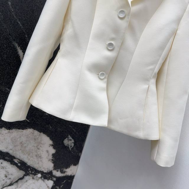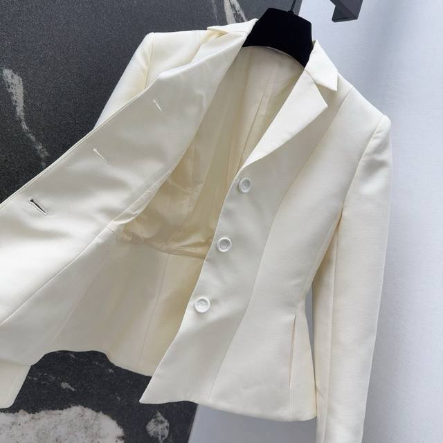Cd 25Ss Early Fall New Arrival: A minimalist, stylish, single-breasted, slim-fit blazer with padded lapels and peaked lapels. This jacket features a retro, sophisticated look. The sculpted silhouette, fitted at the waist, and custom-made wool blend offers a crisp, stylish, and elegant look. Highly practical and perfect for everyday wear. Size S: Bust 84cm, Length 58cm,