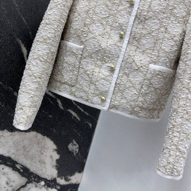 Cd 25Ss Early spring new product Miss D limited edition Princess Diana rattan check suit jacket + A-line skirt suit development and customization three-dimensional woven tweed fabric three-dimensional straight and wide age-reducing temperament classic A-line version upper body looks thin and tall French elegant temperament white rich beauty must-have Sml S code: shoulder width 36 bust 92 length 51 waist 68 skirt length 39