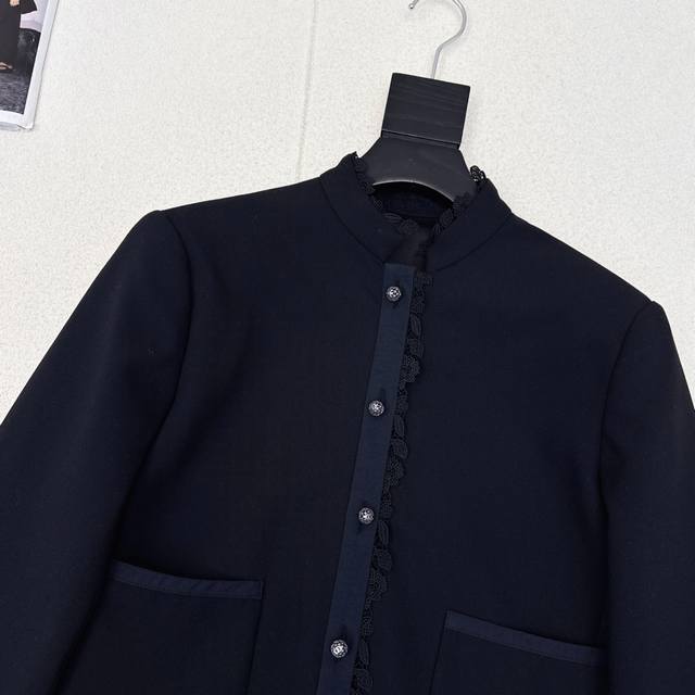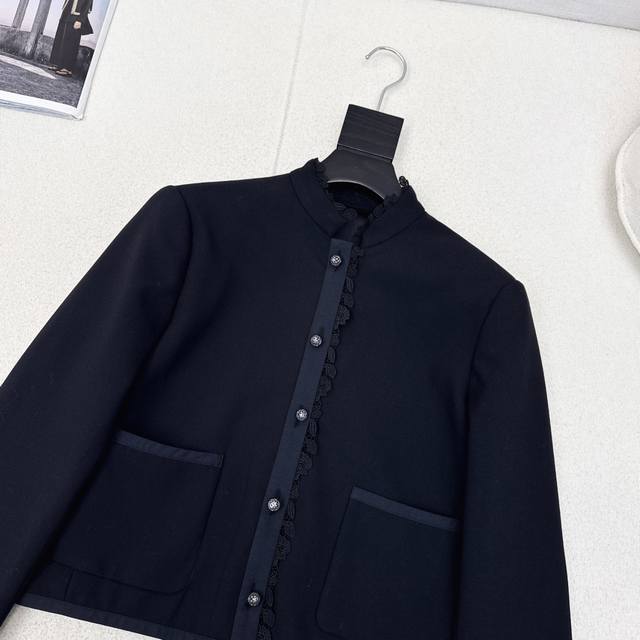 Cd 25Ss New early autumn water-soluble floral lace patchwork small stand-up collar jacket with three-dimensional tailoring and double front pockets. The short version easily divides the body proportions. The upper body is super long-legged and the solid color is simple and high-end. It is super durable and decorated with hollow Cd buckle decoration. It is full of high-end and elegant temperament. Two colors are available for sale. Sml S size: shoulder width 39, chest 94, length 51. Manual measurement may have errors.