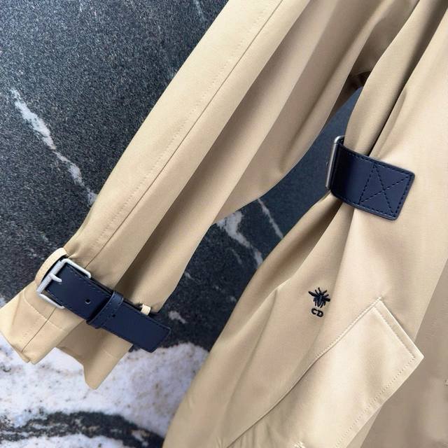 Cd 25Ss New Fall/Winter Classic Double-Breasted Long Trench Coat with a Parisian Blogger Street Style Vibe. Retro, 3D H-Shaped Cut for a Relaxed Fit. High-Density Fabric for a Stylish Look. Side Waistband and Cuffs with Matching Leather. The CD's Bee Embroidery is a Special Addition. The Slimming Design Captures a Perfect Fit, Definitely a Must-Have for Your Wardrobe. Size Sml: Chest 116cm, Length 120cm.